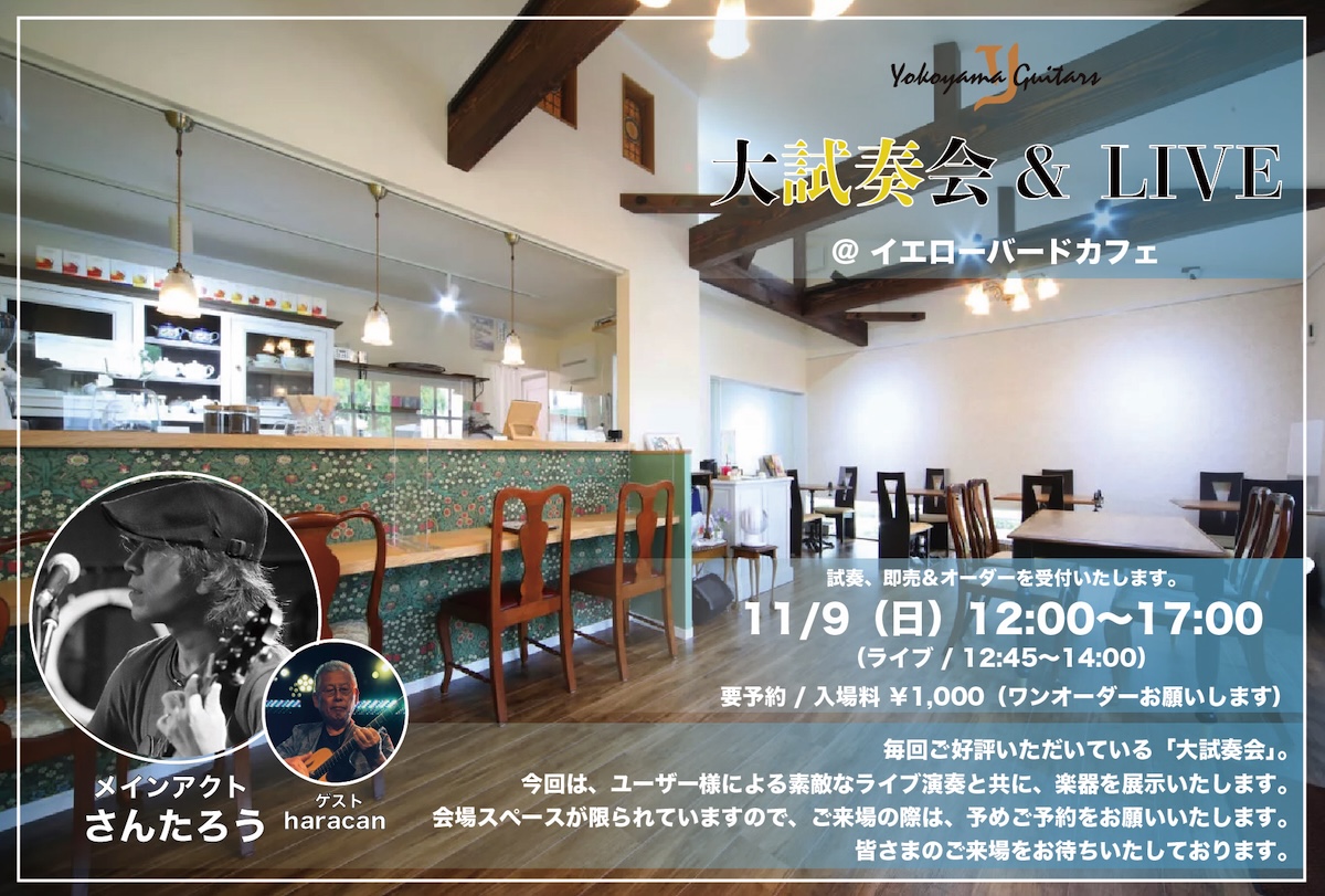 11月9日(日)、愛知県岡崎市にあるカフェ「イエローバードカフェ」さんにて、大試奏会&ユーザーライブを開催いたします。