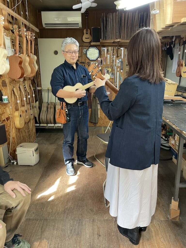 この日は新潟県からお客様のご来場です。O様はナイロン弦モデルが気になるとの事で、試奏にいらしてくださいました。