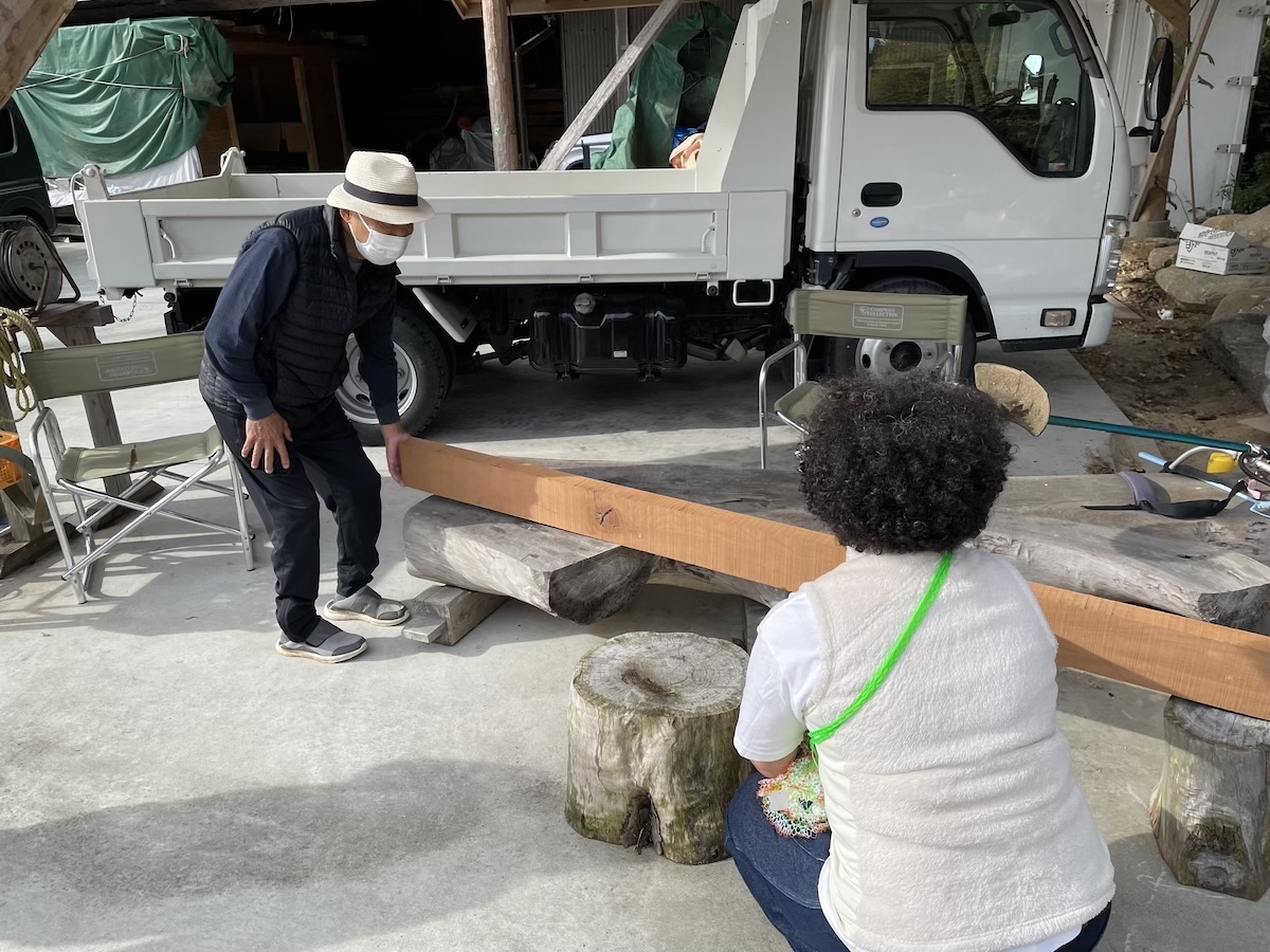ここでお別れかと思いきや、TOKYO OFFICE組は、広野組と一緒に福島県へ向かいます。実は、以前お譲りいただいた榧材。もう少し材料があるとの事で、受け取りに行く事にしたのです。