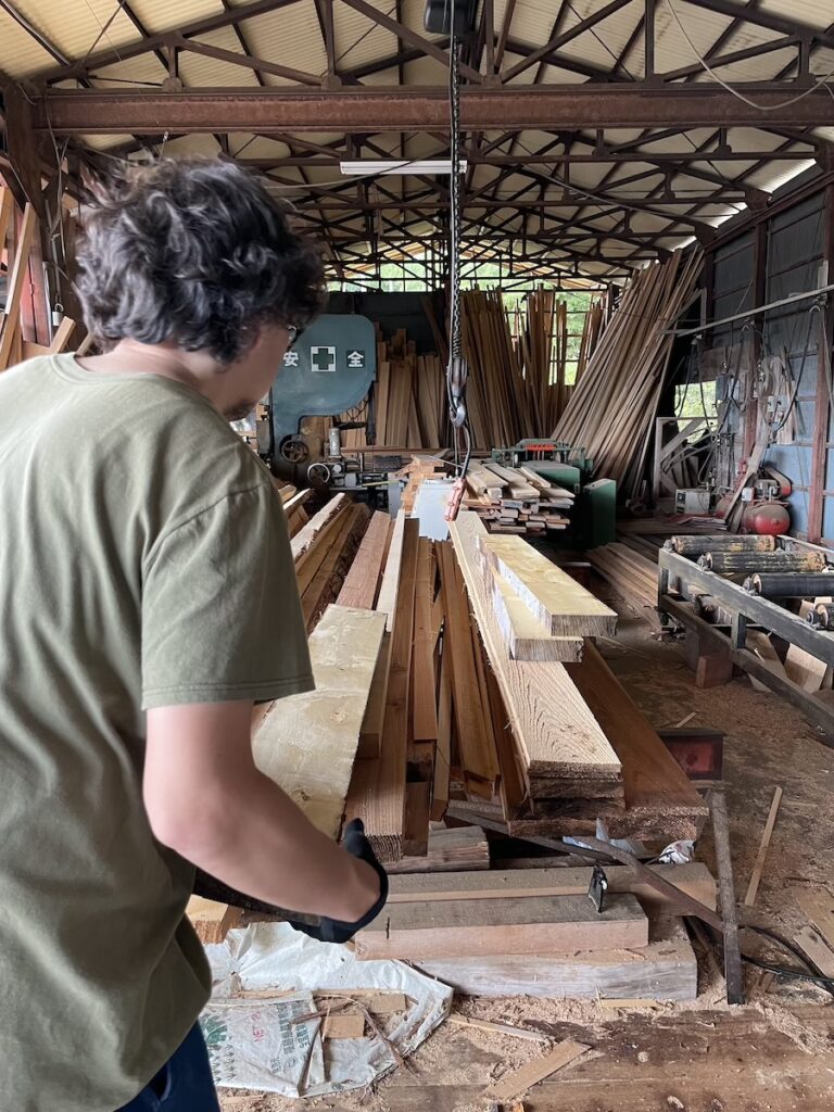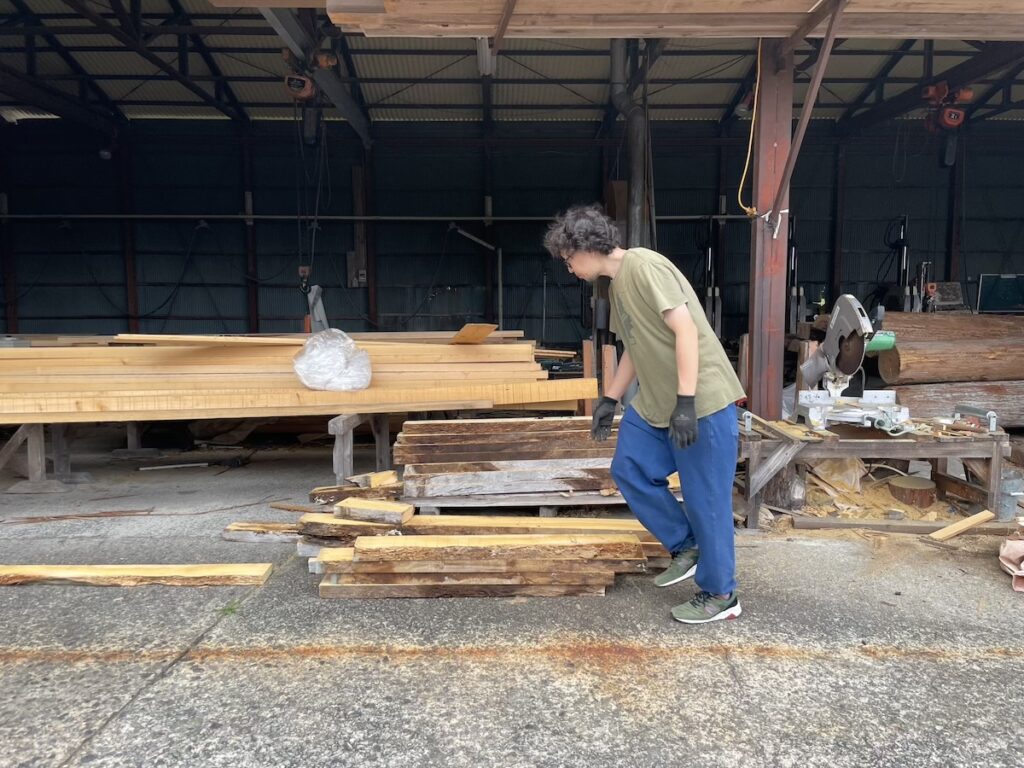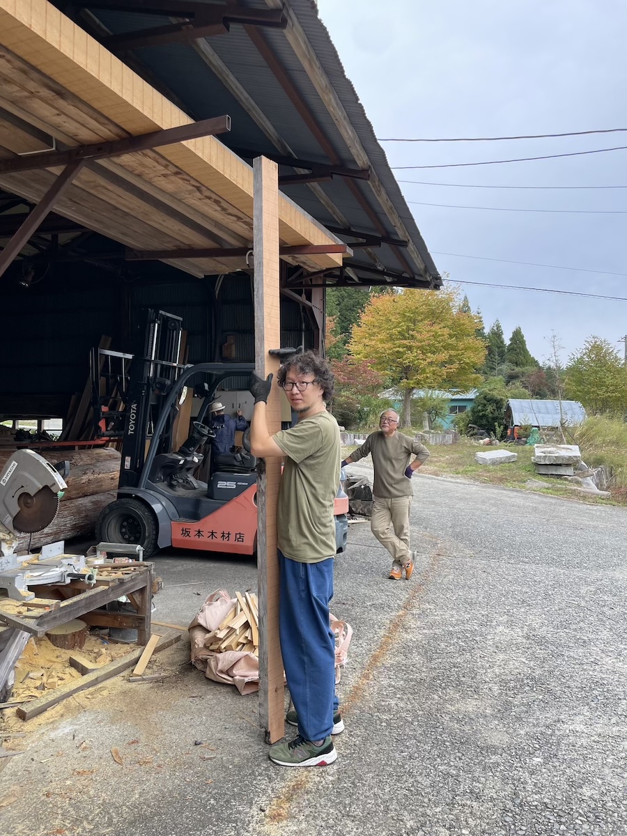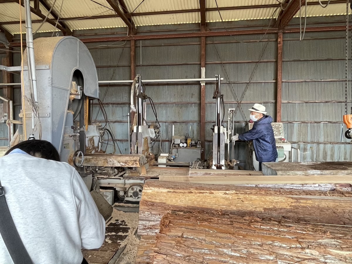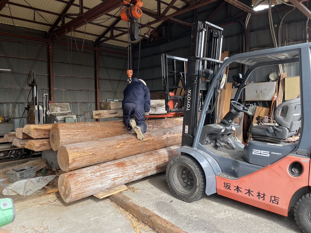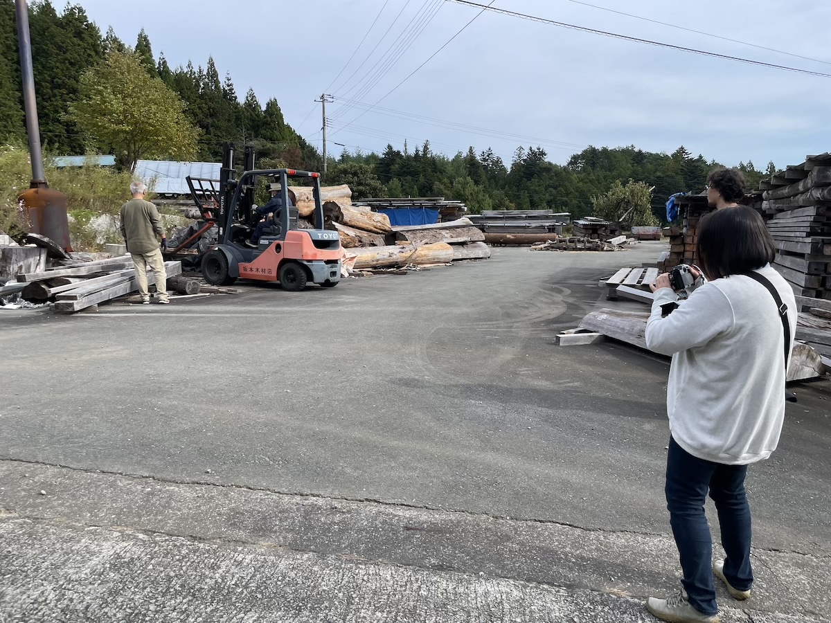 この日は、9時から坂本木材店でお世話になる予定になっています。ぷらっとあっと 館長の磯辺さんに、ご同行いただける事になりました。