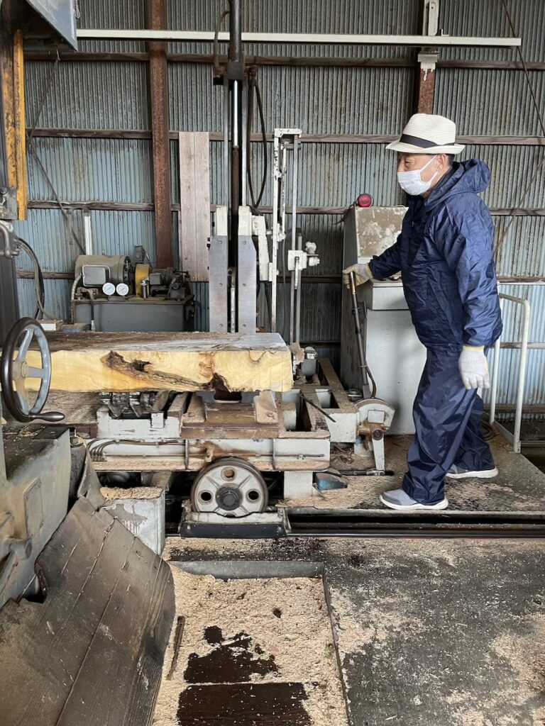 前回同様、巨大な帯鋸で歩留よく挽いていただきます。
