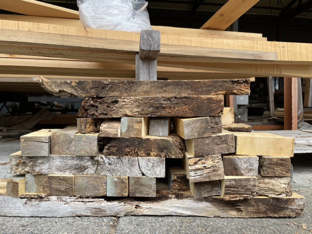 傷んでいる部分や、使えないところはその場で落として良いとの事で、工具をお借りして作業します。スペシャルな材料も、車に積み込めるギリギリのサイズにカットさせていただきます。