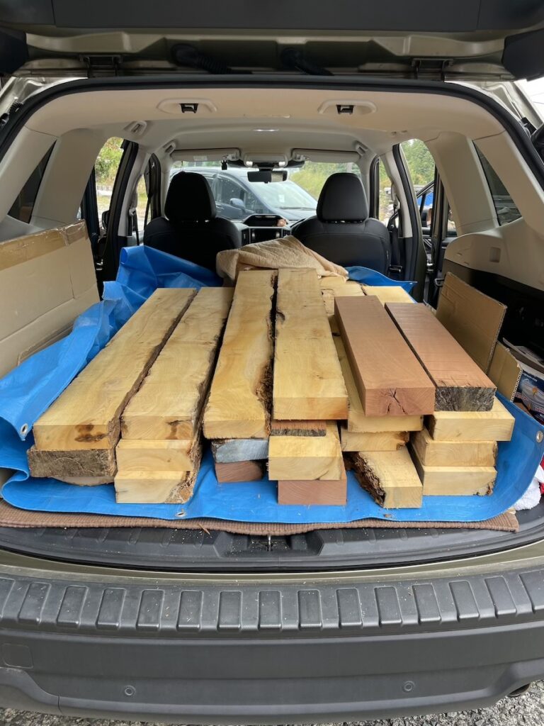 当初、想像していた以上の材料の量になってしまいました。うれしい悲鳴です。積み込んで長野の工房へ持ち帰ります。
