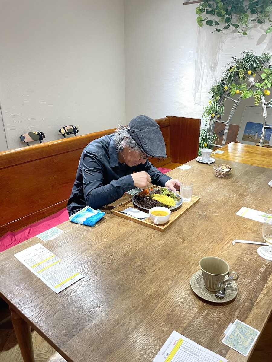 さんたろうさんは、演奏を終えて食事の時間。素敵な演奏をありがとうございました!