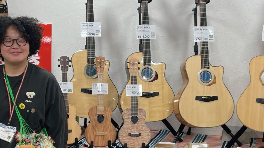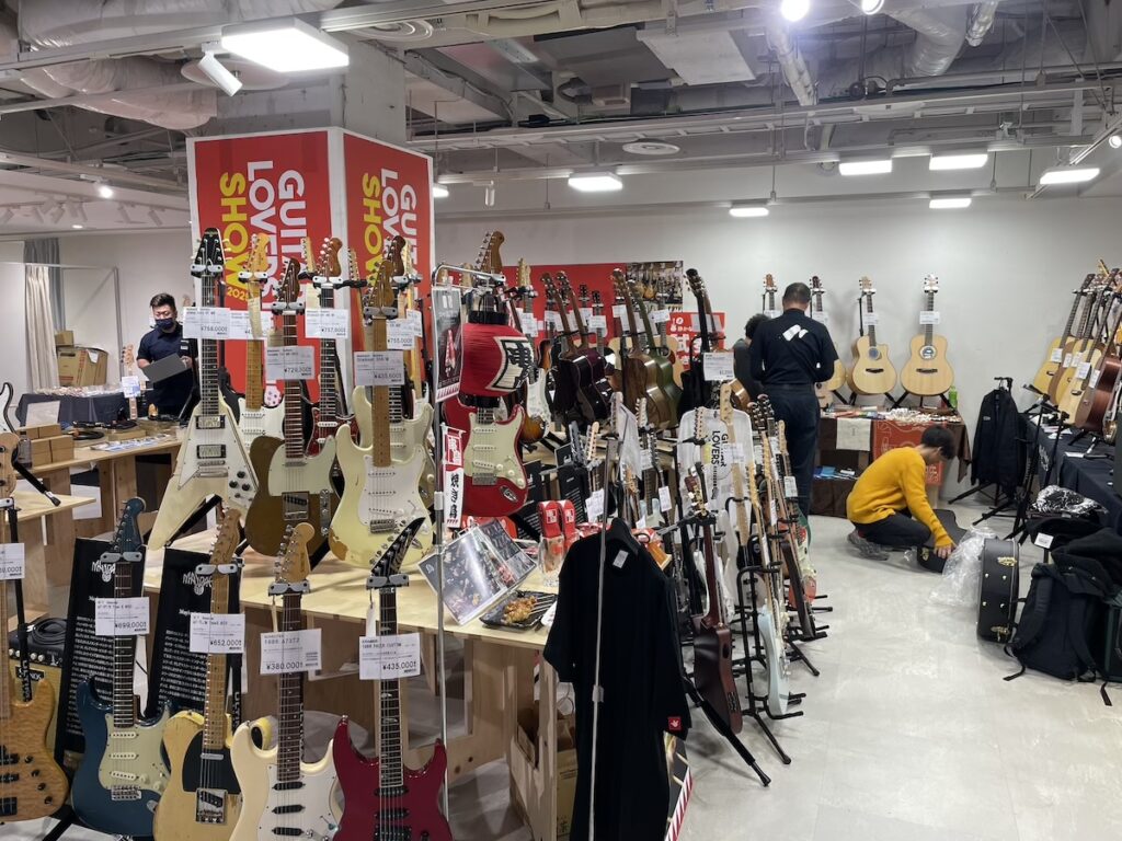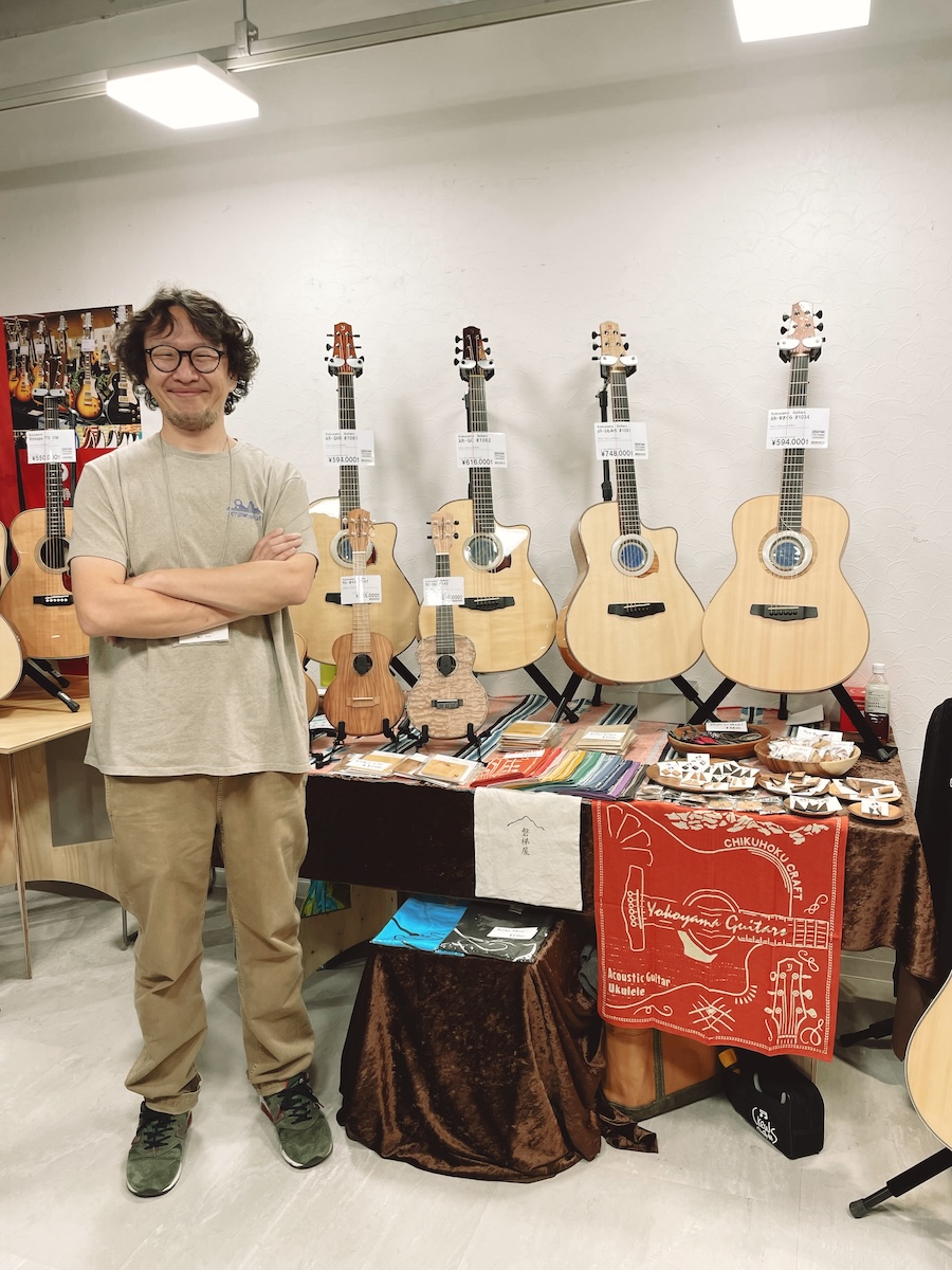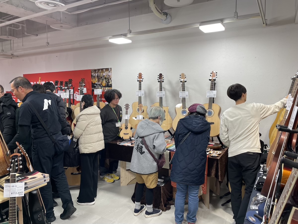 今回はギター&ウクレレ、アクセサリーとブースサイズに置けるだけの楽器を準備しました。