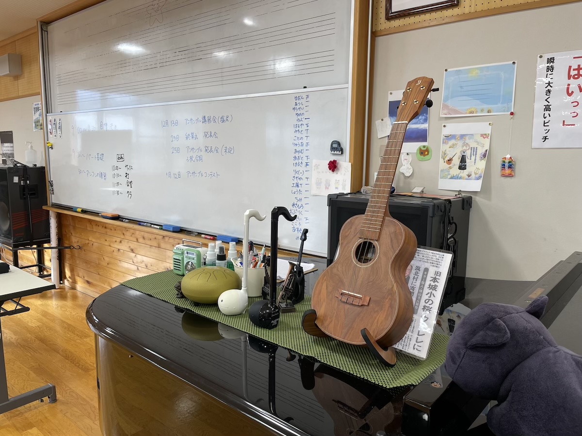 村へ寄贈したソメイヨシノのウクレレは、現在中学校の学生さんたちが弾いてくれているようです。