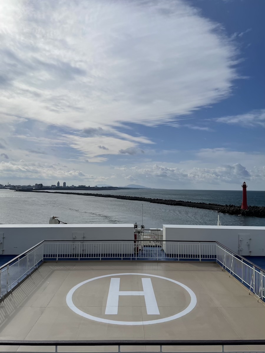 昼の12時に乗船して、到着は翌朝5時ごろです。