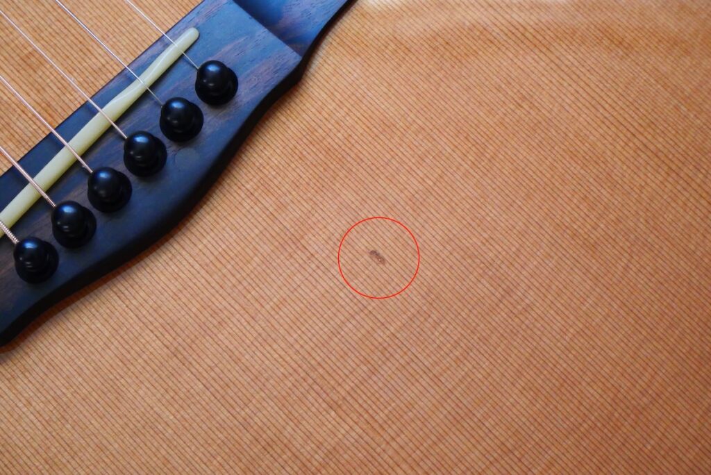 コンディションですが、ボディトップに打痕がありますが、工房にて塗装タッチアップしています。その他は、大変きれいなコンディションです。