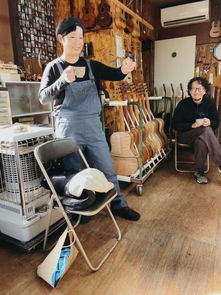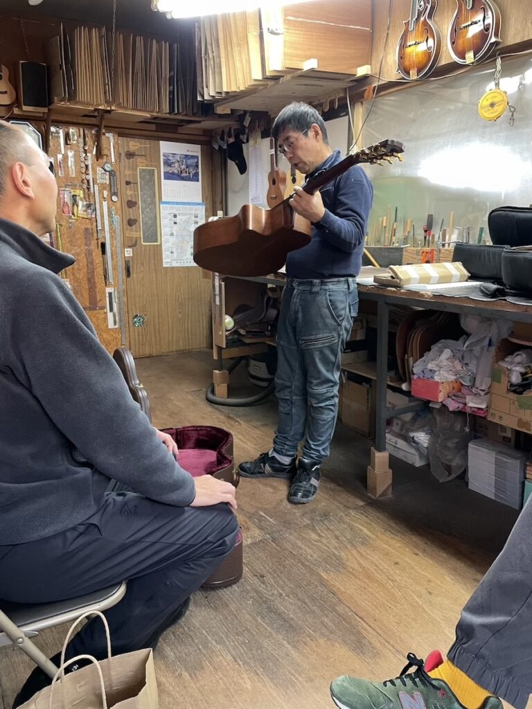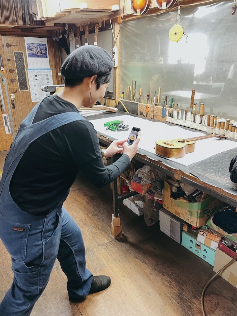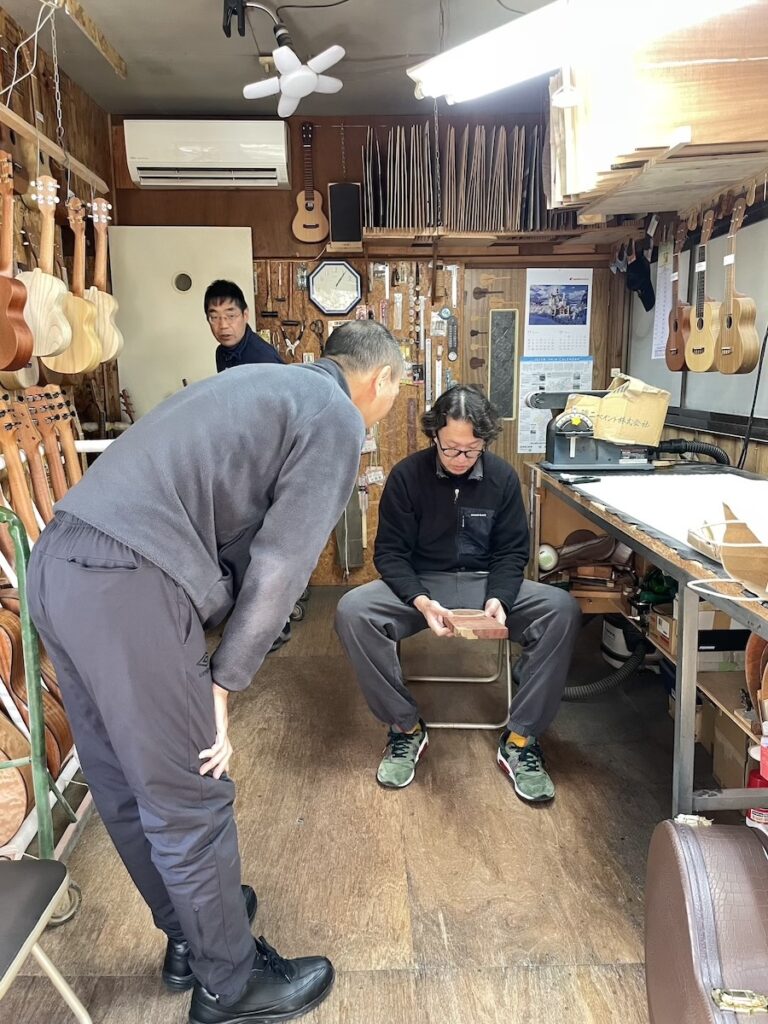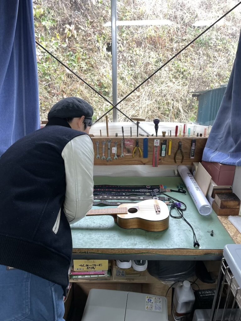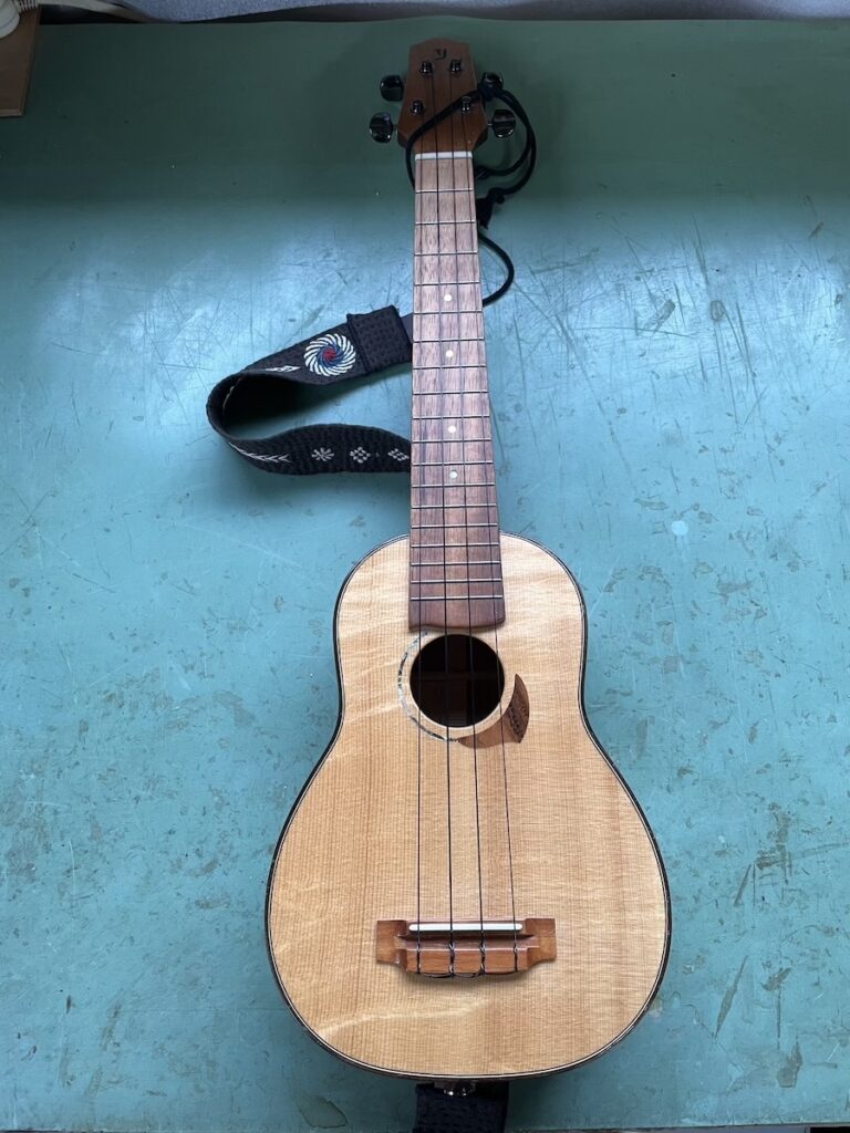 別日には、長野市のY様がご来訪。ご購入いただいたウクレレに、ストラップピンを取り付け希望です。