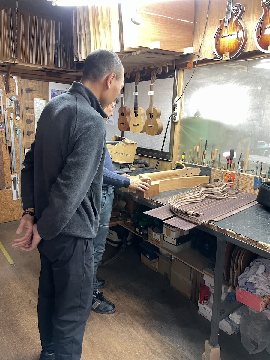 ご希望モデルは、ARシェイプのナイロン弦モデル。TOKYO OFFICEにご来場いただいた際に、ご希望材はほぼ決まっていました。ご希望に合わせて材料を選定していきます。