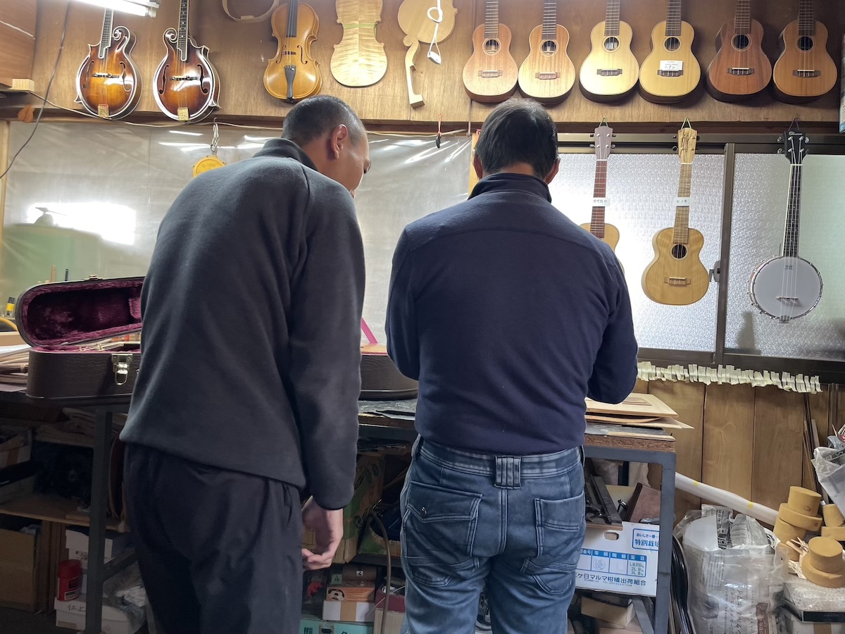 現在、ご愛用のギターをお持ち込みいただき、ネックやボディ厚などのリクエストをいただきます。必要な箇所は採寸し、オーダー仕様書にまとめていきます。