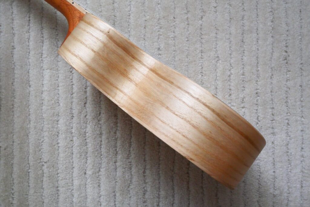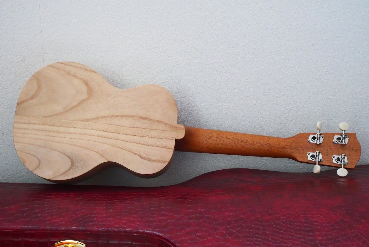 ネックはマホガニー、指板、ヘッド天神には、杢目が近い栗材を採用。ブリッジにはメイプル材をチョイスした、ソプラノウクレレです。
