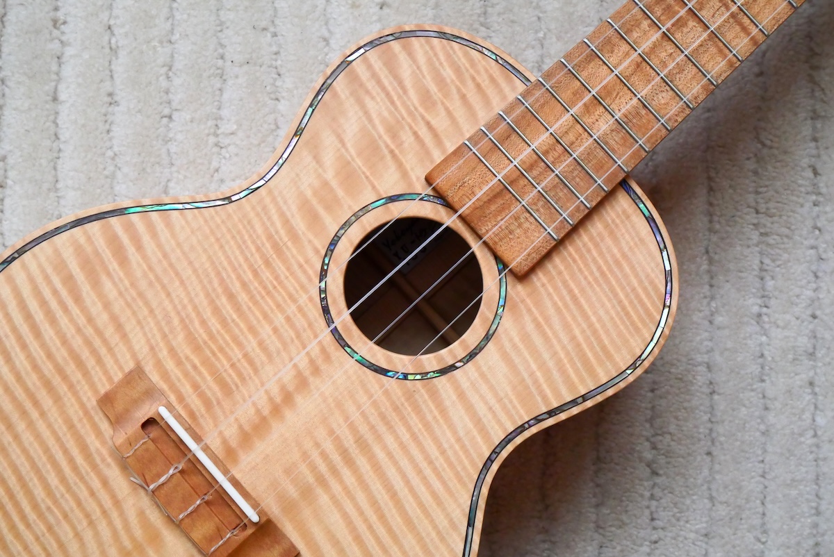 さらには、ボディパーフリングにアバロンを採用した、特別製作のコンサートウクレレです。