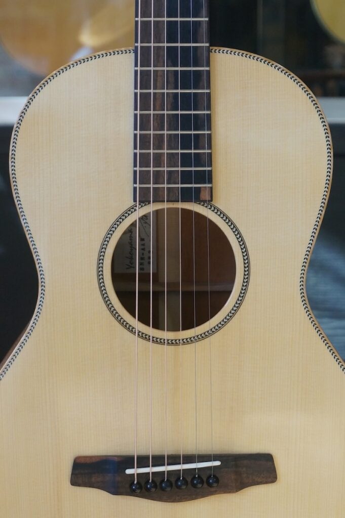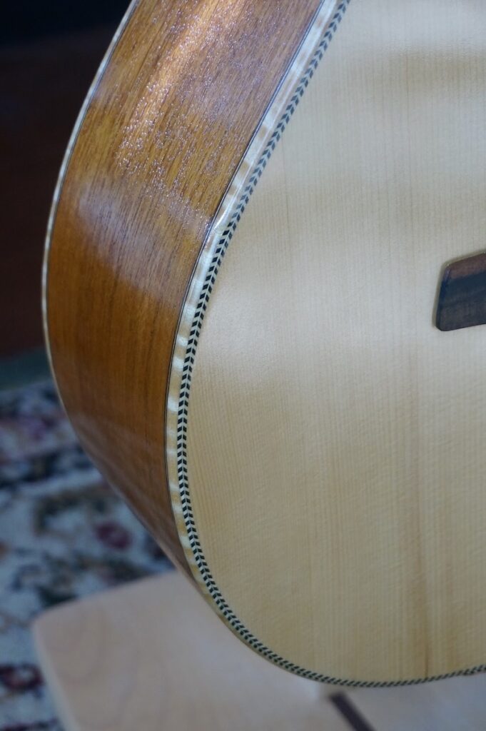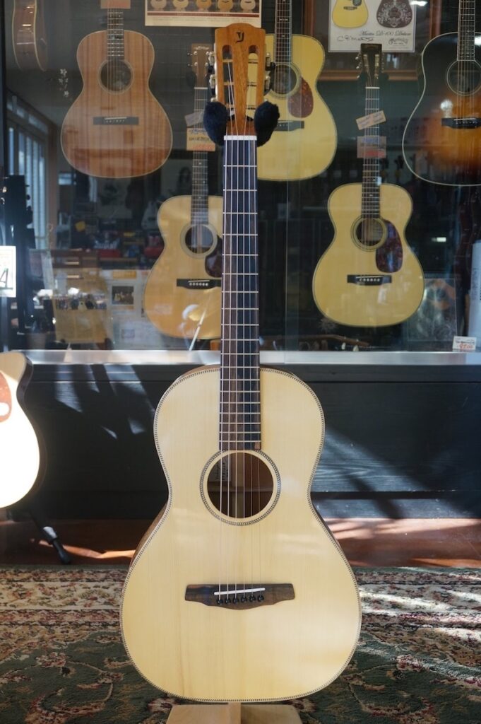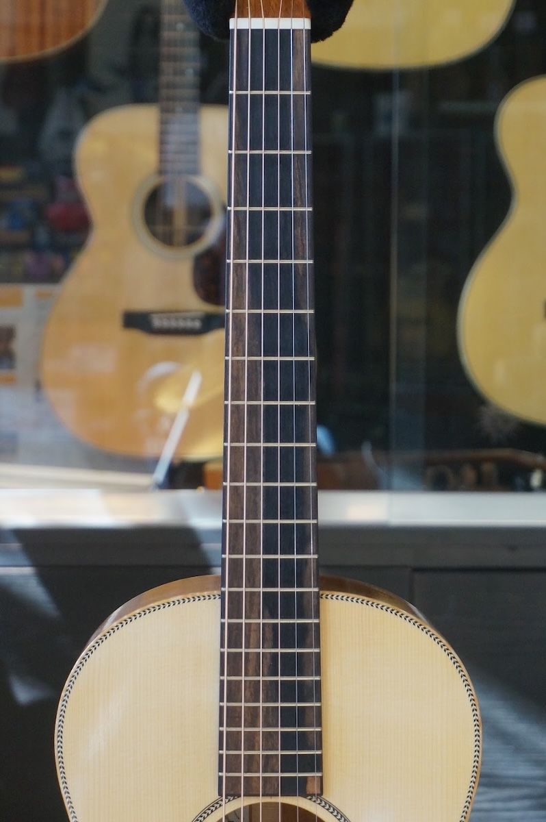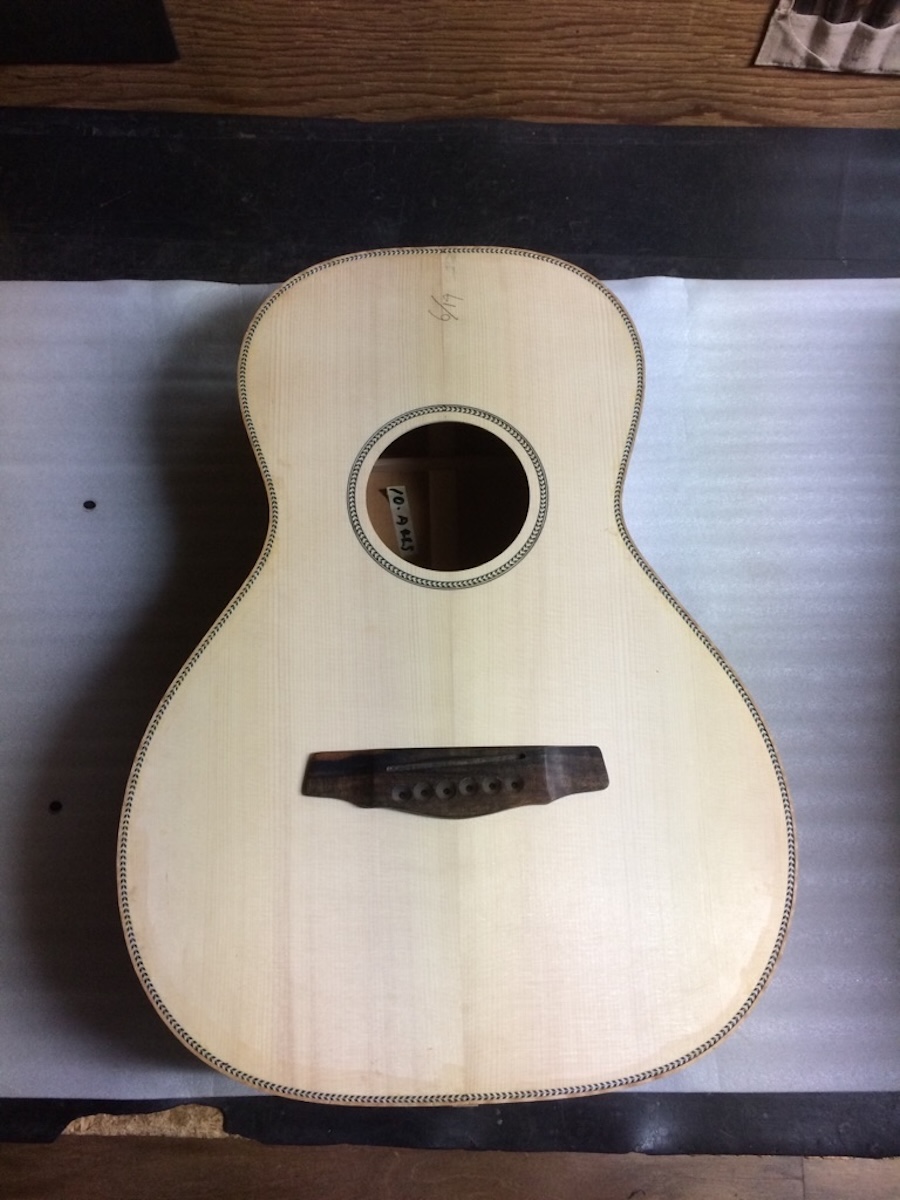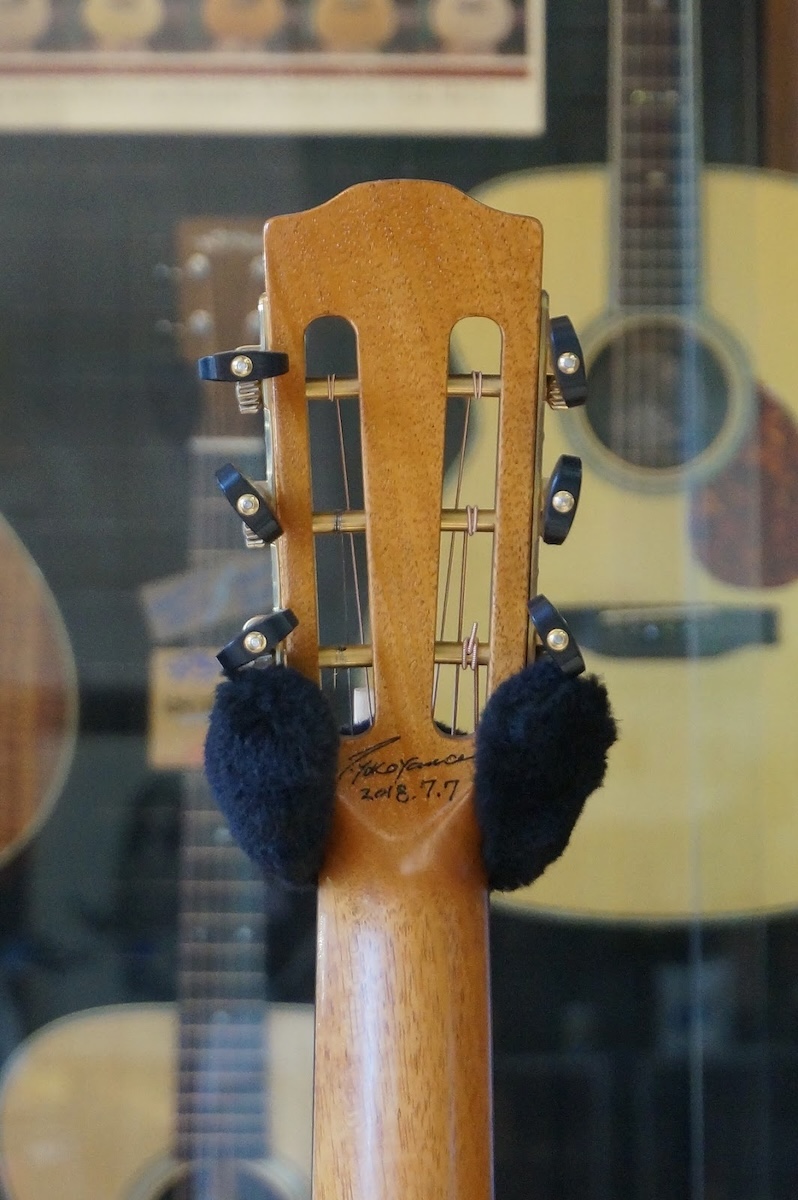 アディロンダックスプルーストップ、アクアティンバーマホガニーサイド&バックのスペシャル仕様です。もちろんこのプロトタイプも前回同様、特別にシェラック塗装を採用してもらいました。