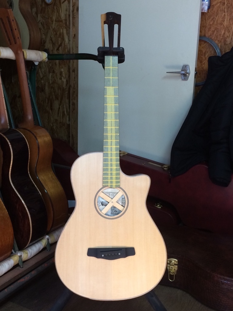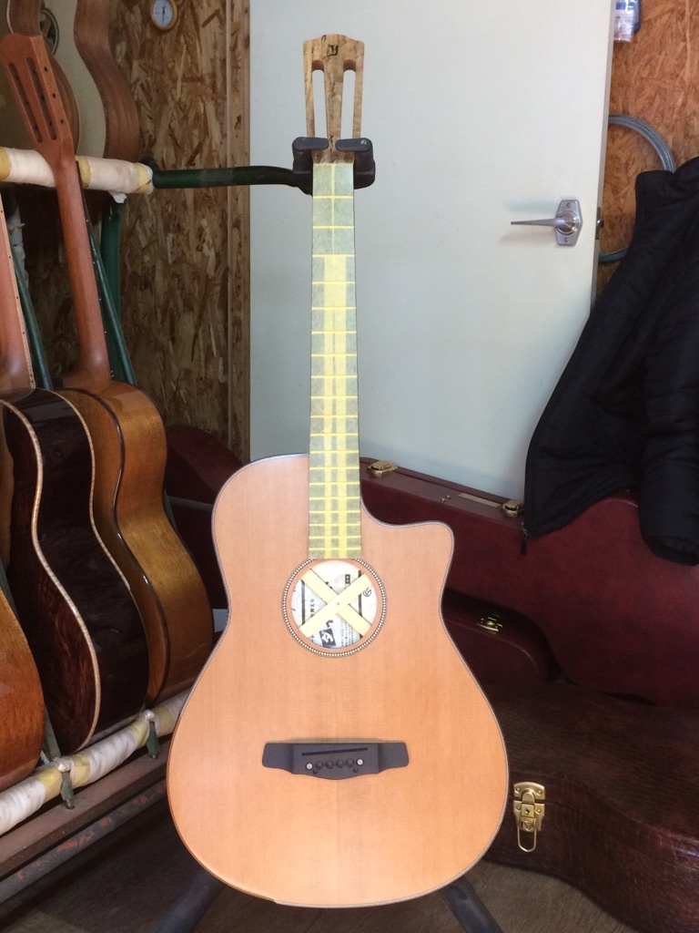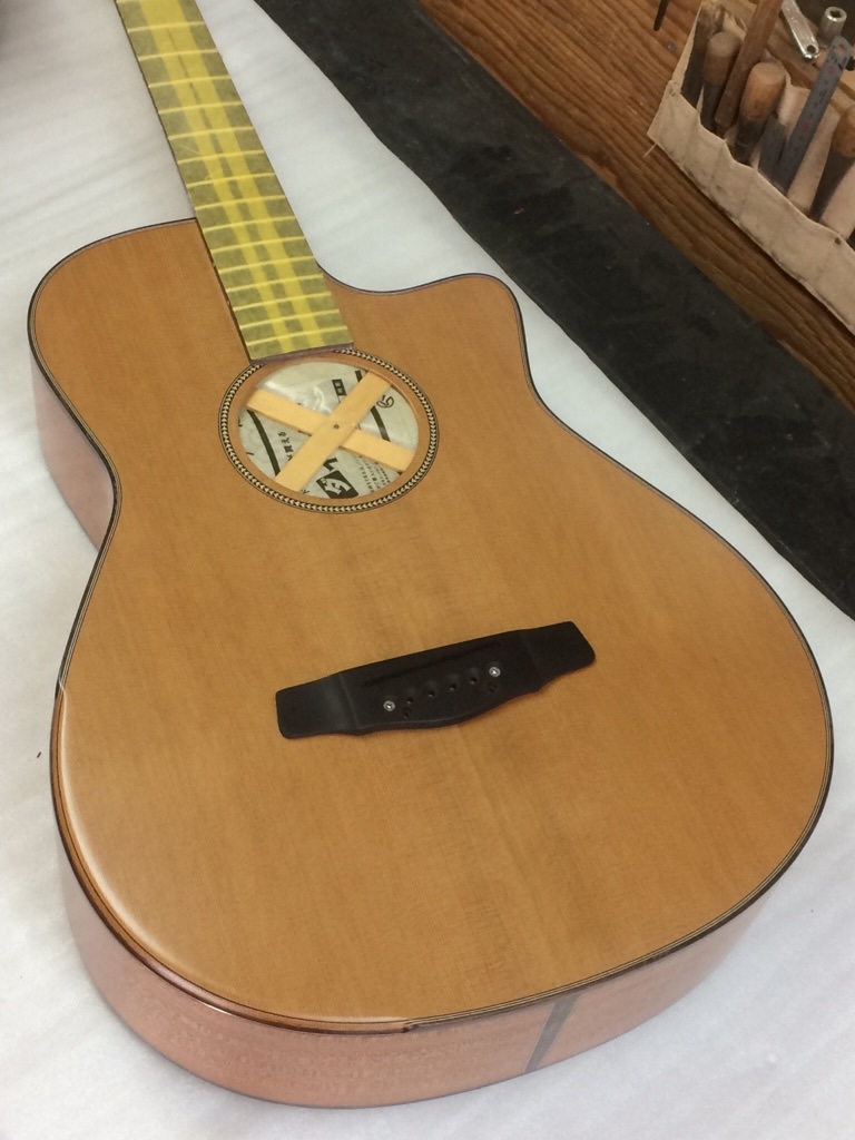 指定通りサウンドホールの位置を約10mm下げてもらいました。