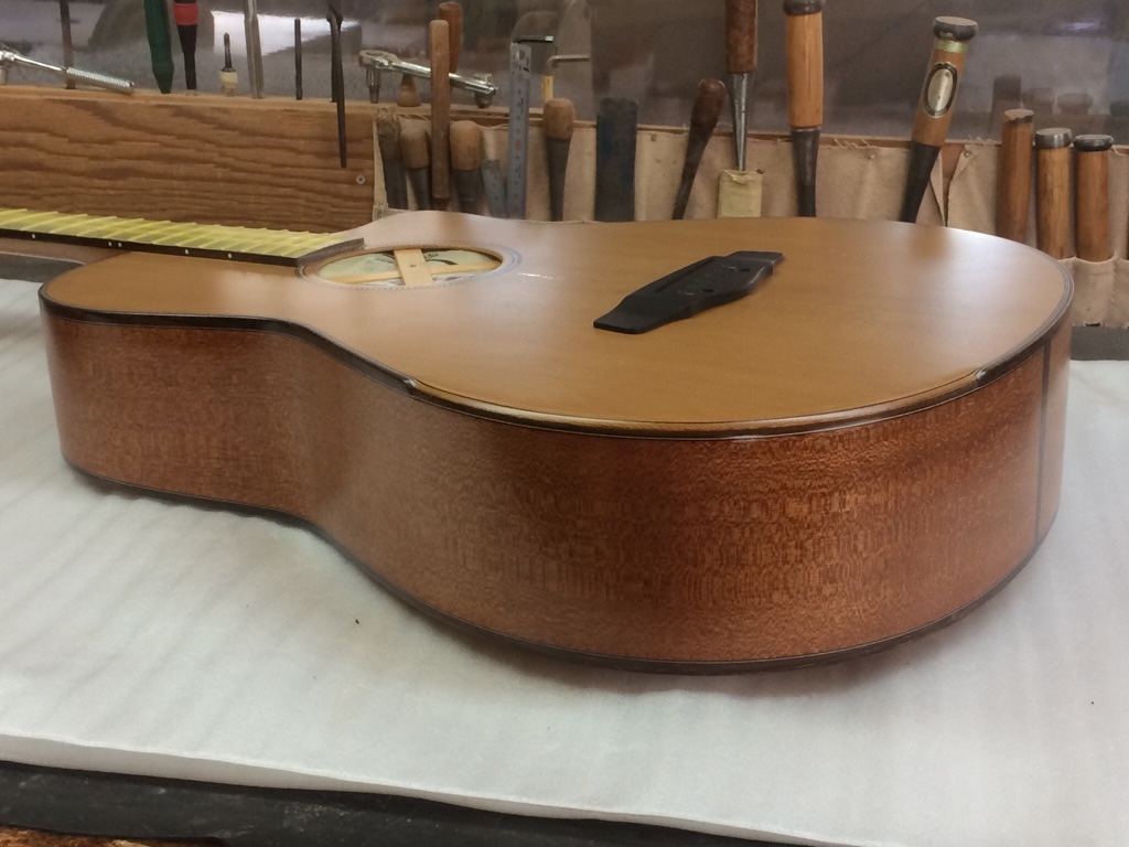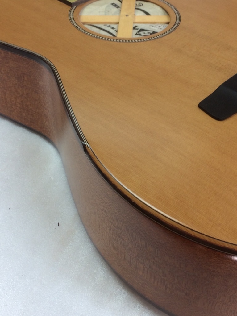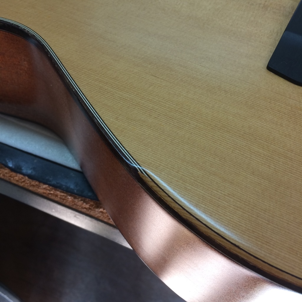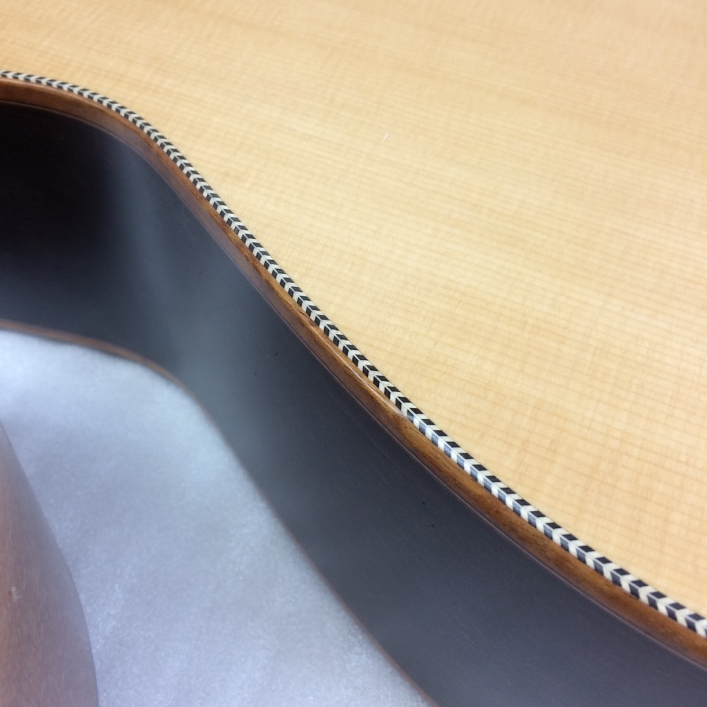 ボディトップのパーフリングがストライプの場合は、大きく落としてこんな感じ。