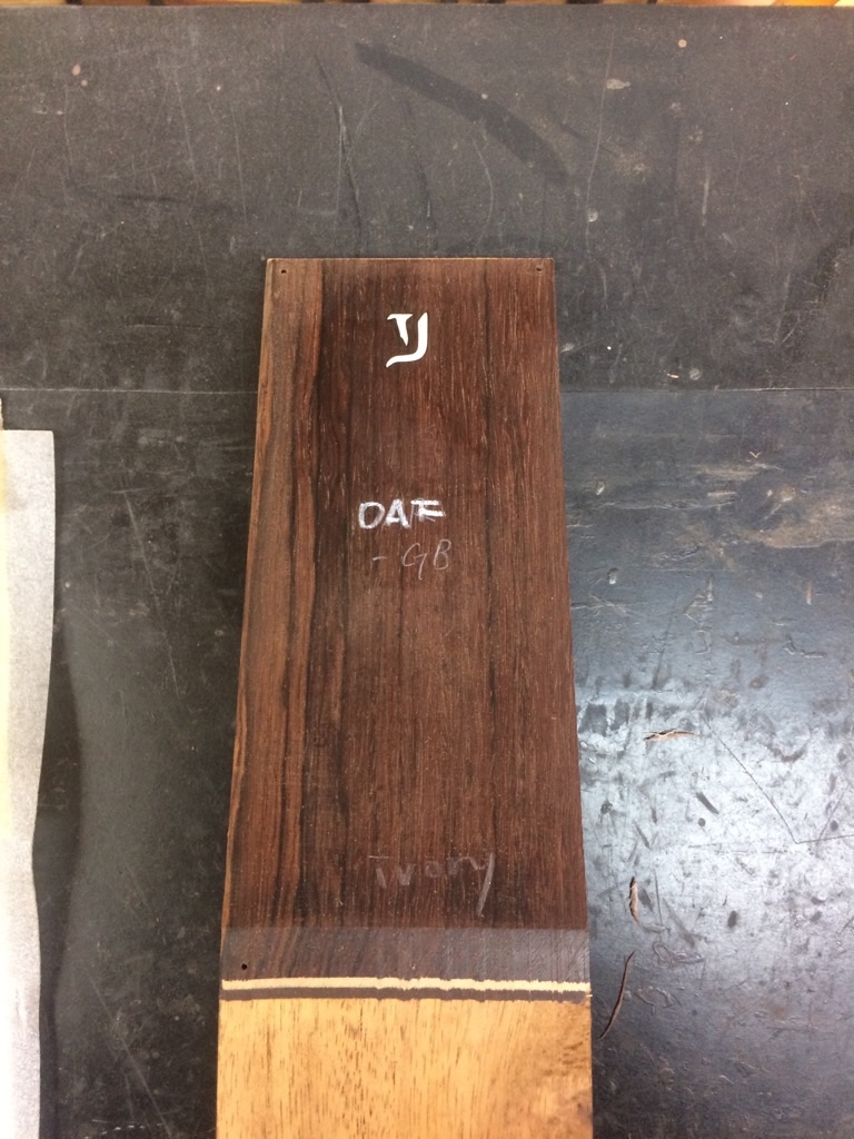” OAF-GB ” のロゼッタ埋め込み材。バックのとも材、ブラジリアンローズウッドです。