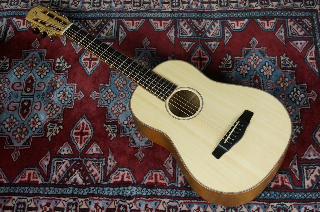 ボディトップはホワイトスプルース、ボディフィニッシュはミニの鳴りを活かした艶消し塗装となります。