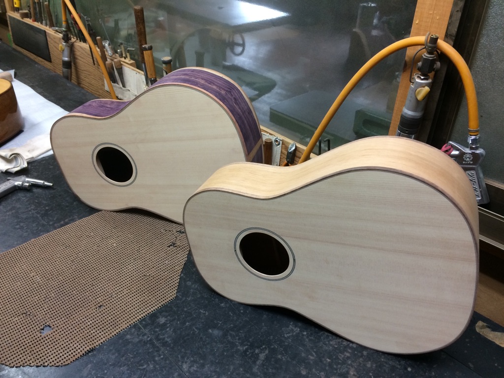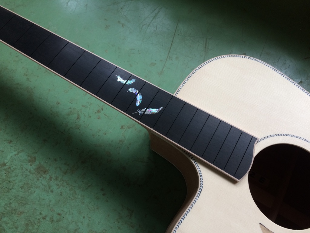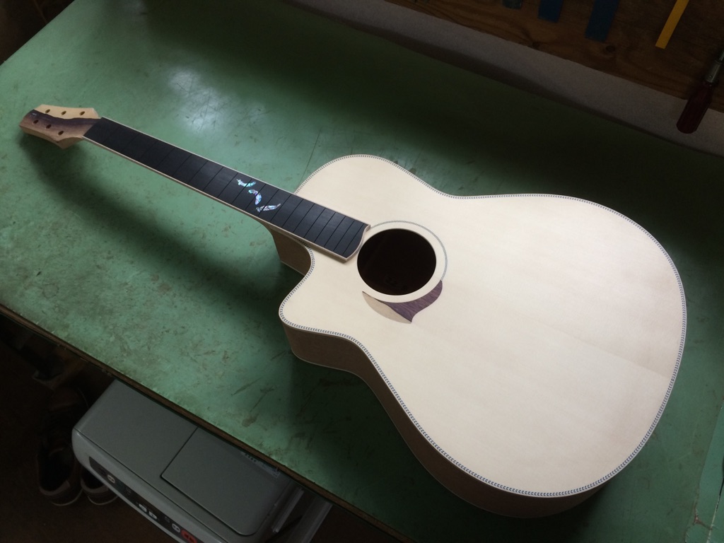 福井県 M様のレフティー仕様は小川さんのインレイ加工も完了し、ここまで来ました。かっこいい!!!M様よりご希望のあった塗装仕様の変更も先生に忘れずに伝えます。