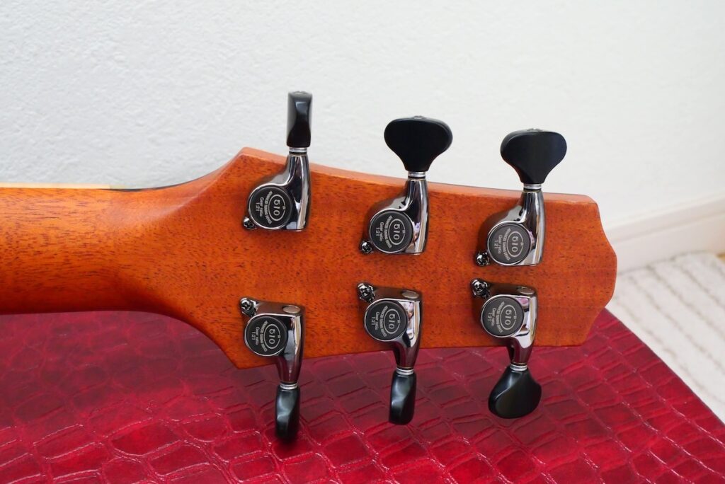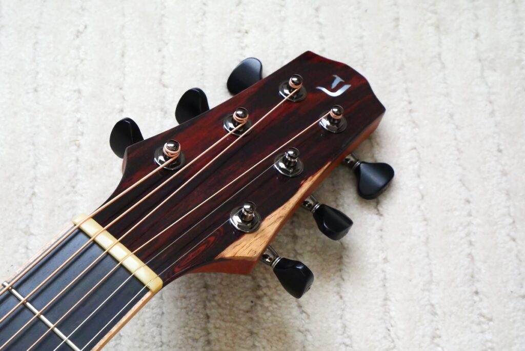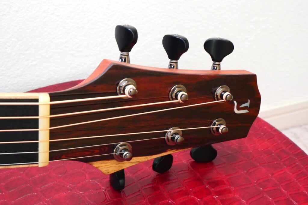 サウンドホールロゼッタ、ヘッド天神ともに、シンボリックなカマティロ材をセレクトし、統一感を演出しています。