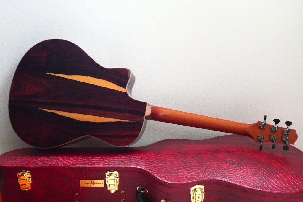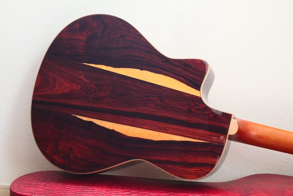 材料の入荷が見込めないことから、すでにオーダーストップとなってしまった「カマティロ」材。Yokoyama Guitarsの代名詞とも言える稀少材です。