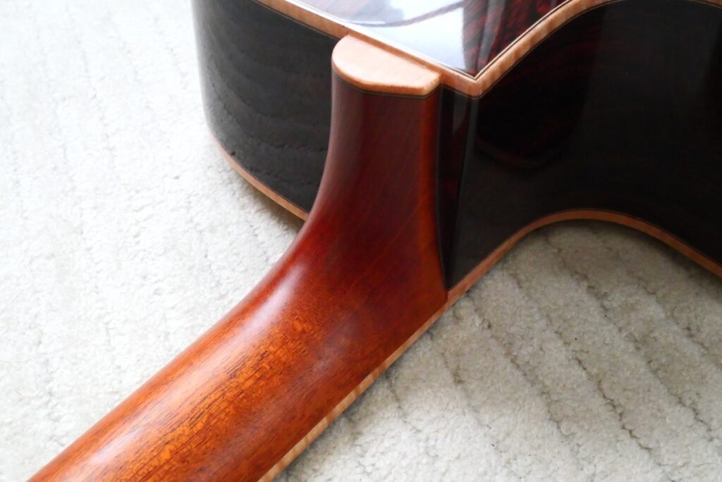 今回は特別に、貴重なホンジュラスマホガニーのワンピース材を採用しています。ここ数年全く入荷がありません。工房に長年ストックしていた極上材です。木取りも文句なしの一本竿です。