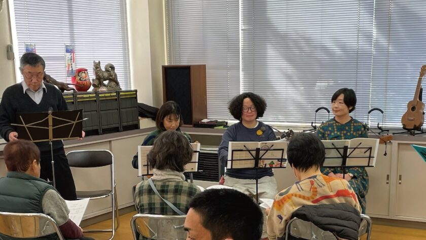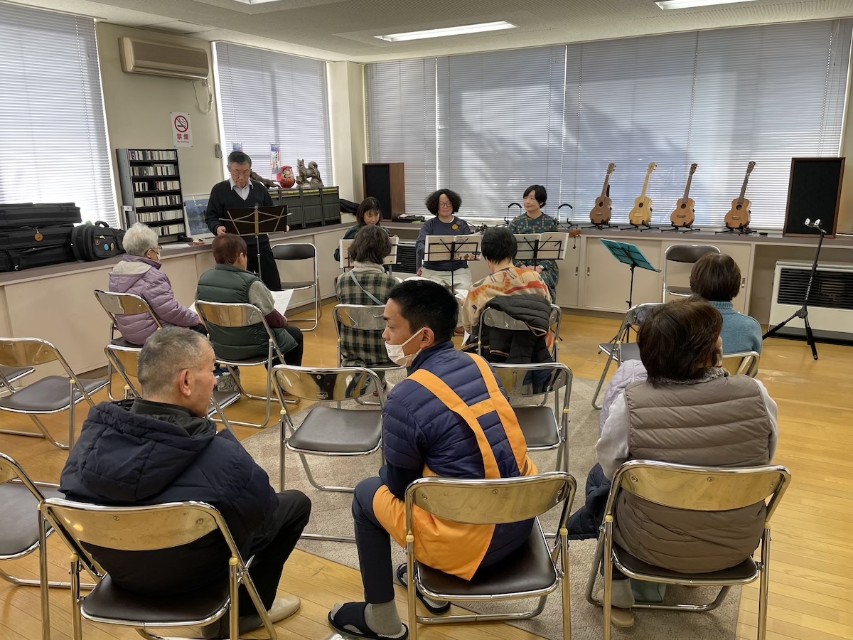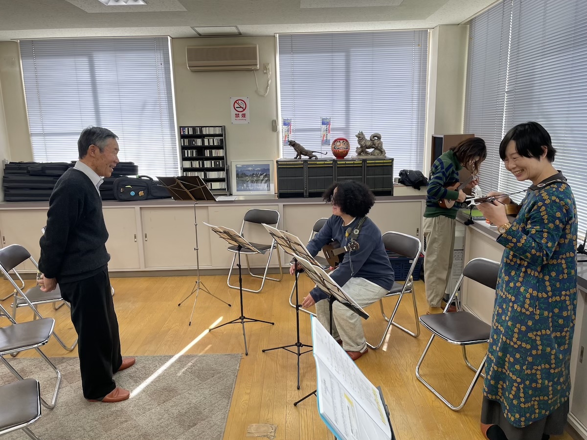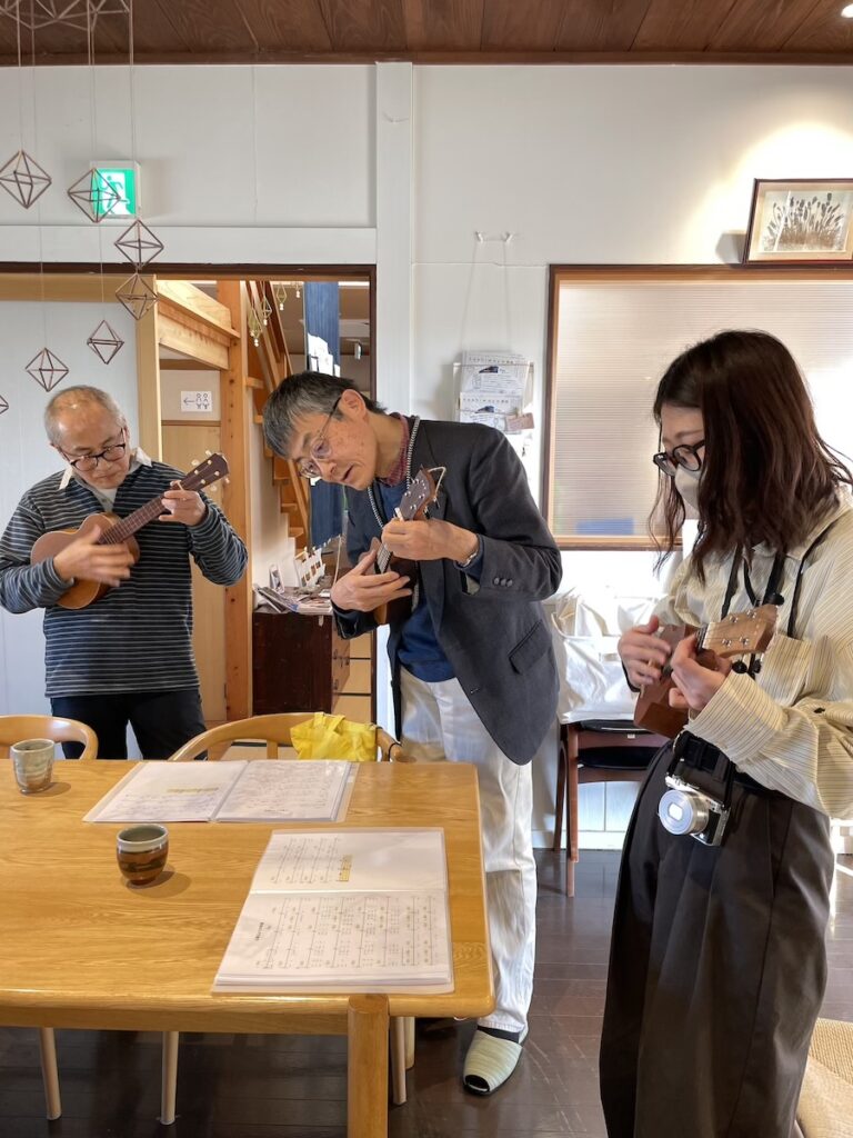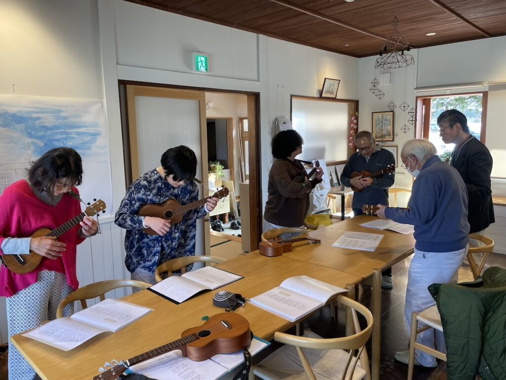 今回は、前山さんのハーモニカ、ウクレレ3名、橋川はアコースティックギターで参加。ボリュームのある構成です。