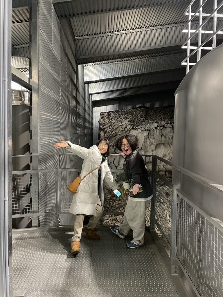 社員食堂で食事をし、「雪室」を見学。なかなか見る機会もないので、M様も興味津々です。