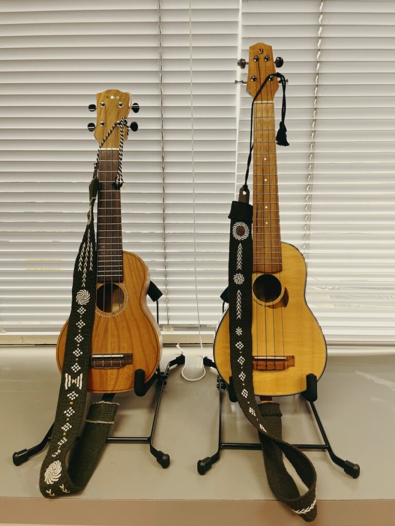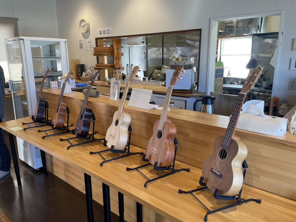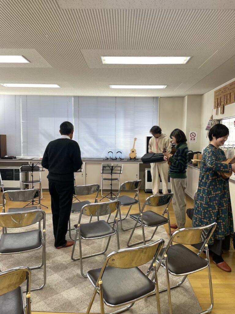 到着して、すぐにウクレレを並べて準備。生徒さんにもお手伝いいただきました。