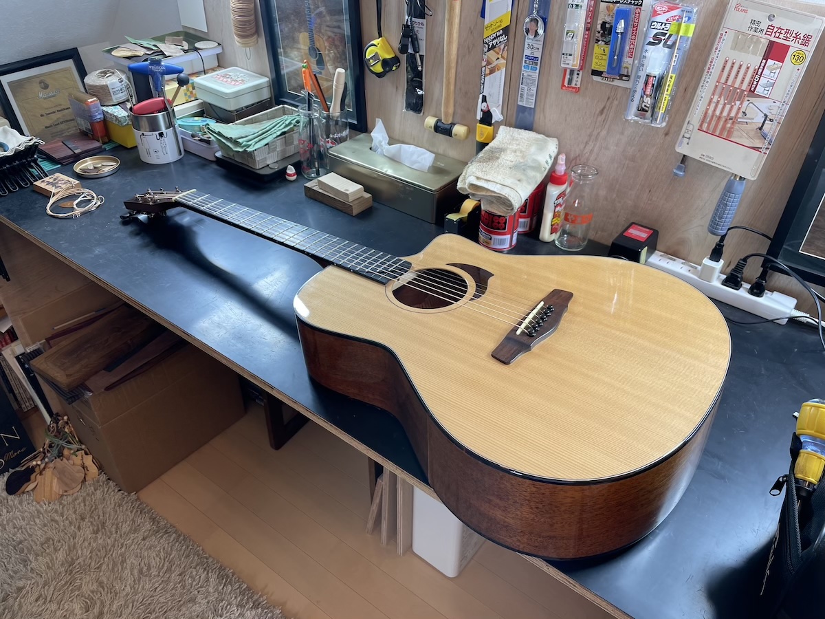 ちょうど東京に送ってあったギターも持参いただき、調整させていただきました。島の湿気は凄く、この時期(乾燥期)にお目にかかる楽器ではないというほど湿気たっぷりでした。