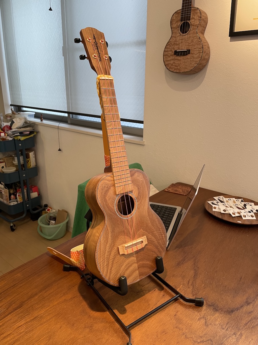 弾き込んで、風格の出てきたくるみウクレレも持参いただきました。音もかなり変化してきたようです。弾いていただけて嬉しいです。