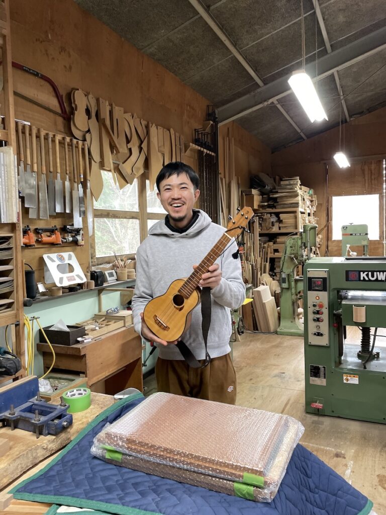 実は橋川、ギターやウクレレを演奏するために腰掛ける、ちょうど良い椅子を探していました。これが中々見つからず、今回「 HANANOKI FACTORY 」さんをご紹介いただける事になってから、密かに企画を思案していました。