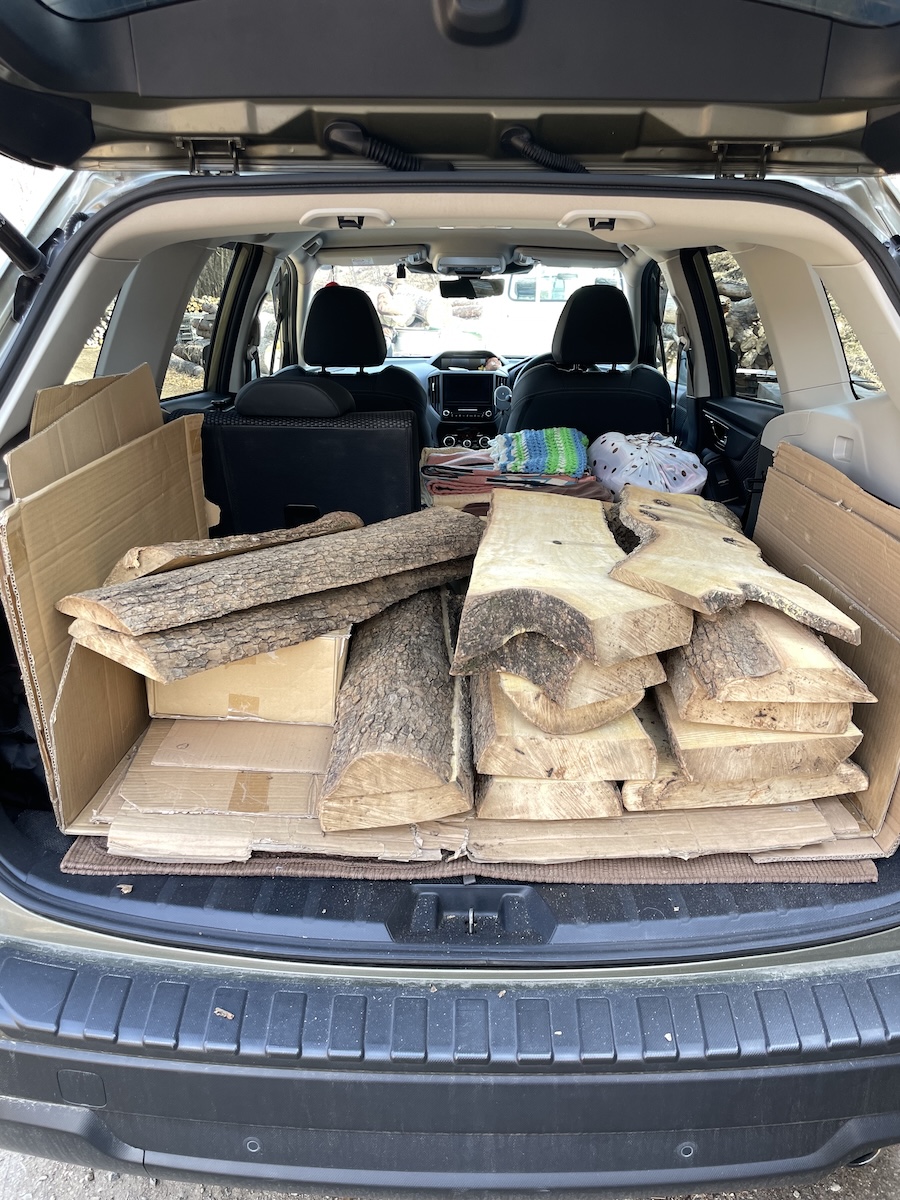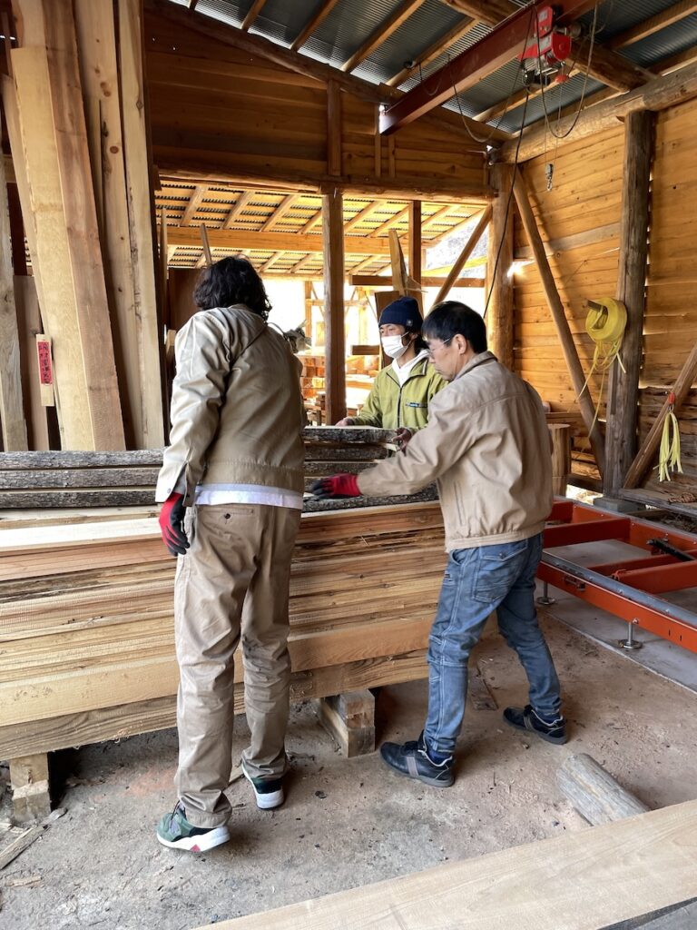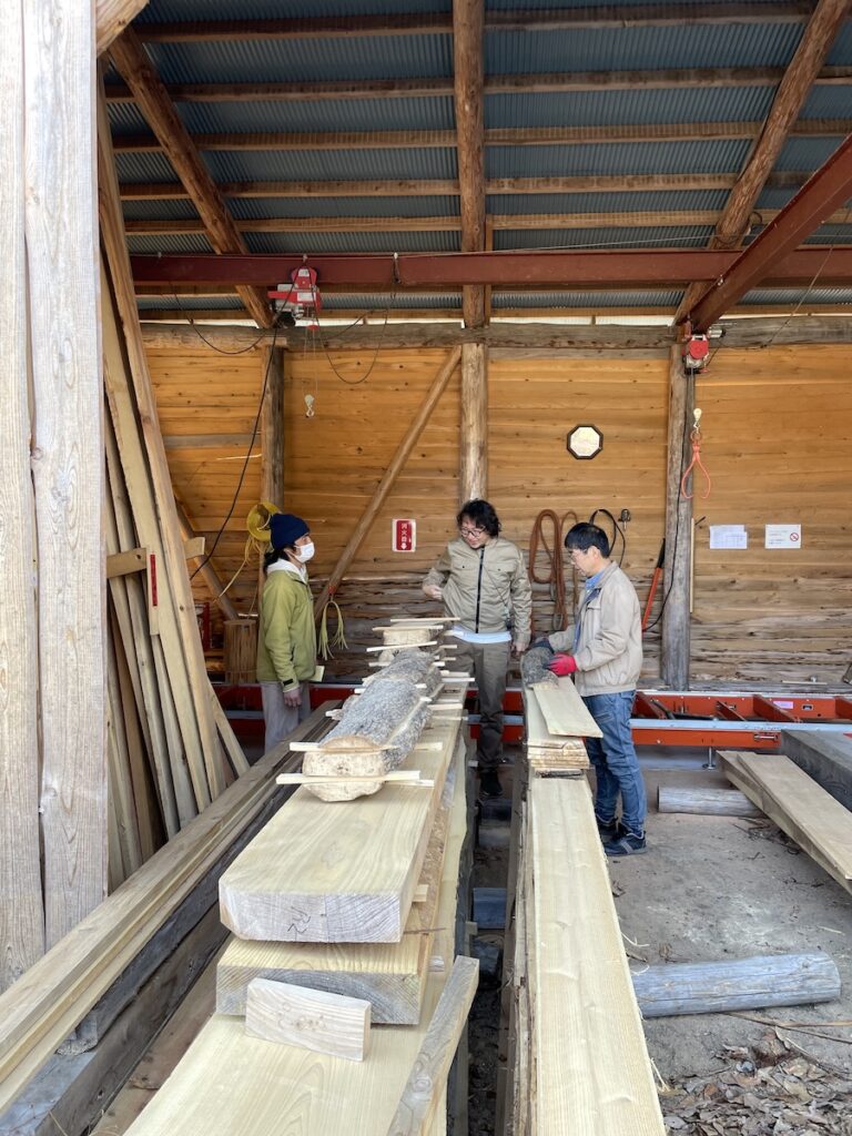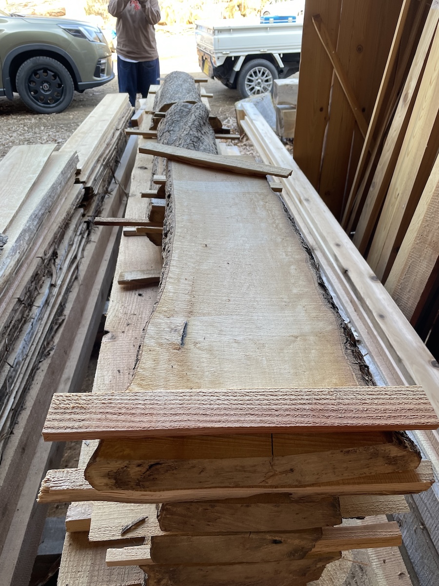 翌日は、朝一で村内の「山福農林舎」さんへ製材をお願いしていた、「柿の木」を受け取りに行きます。
