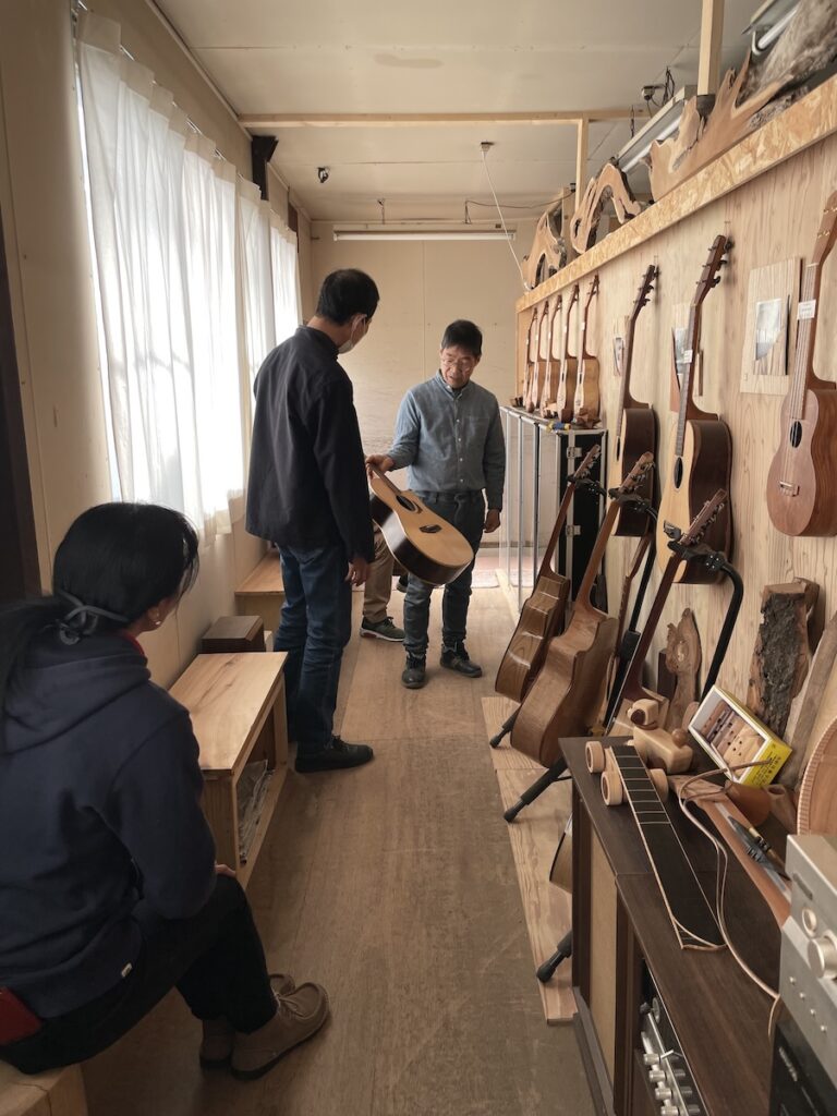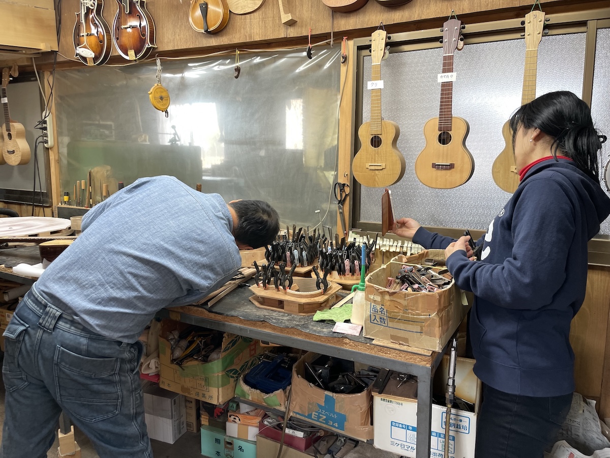 こちらが野亜さん。みきさんのウクレレを持参して、見てもらいました。