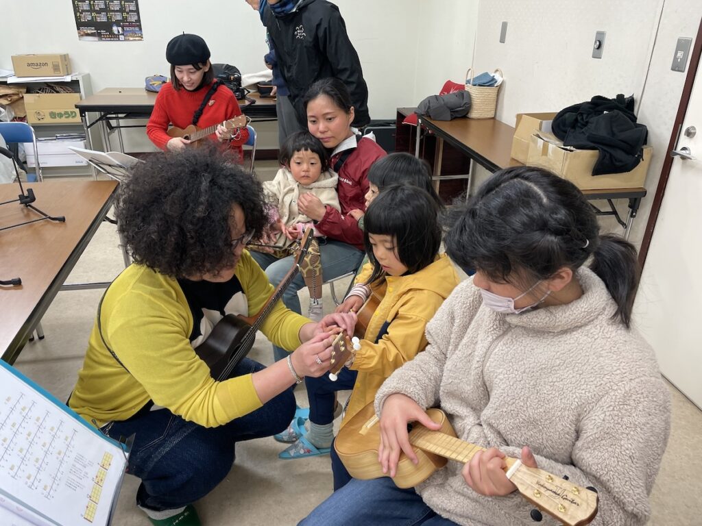美紀さんも、ウクレレの先生として、子供たちに頑張って教えています。全くウクレレを触ったことがない子供たちも、あっという間にこの日の課題(4つのコードを押さえる)をクリア。
