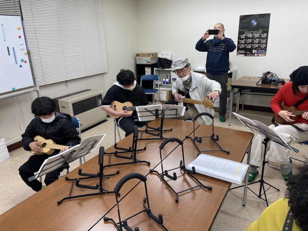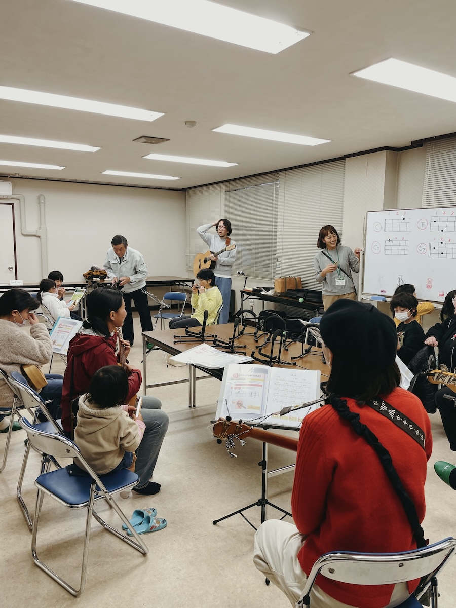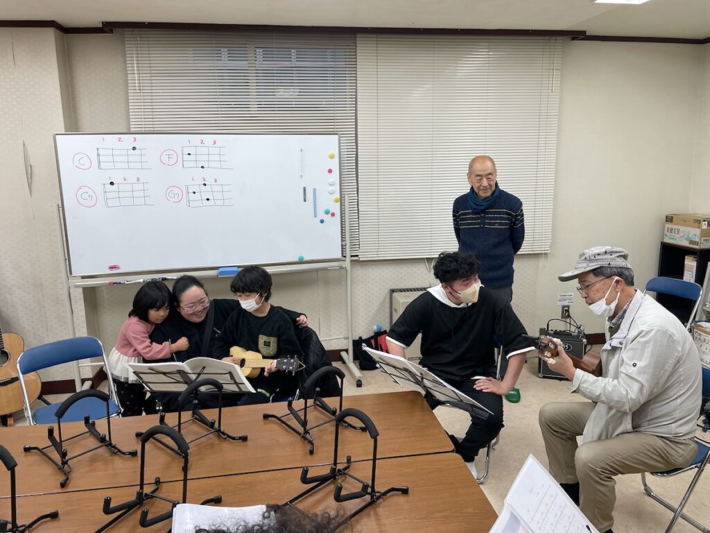ウクレレ組と、ハーモニカ組の2班に分かれてレッスン開始。