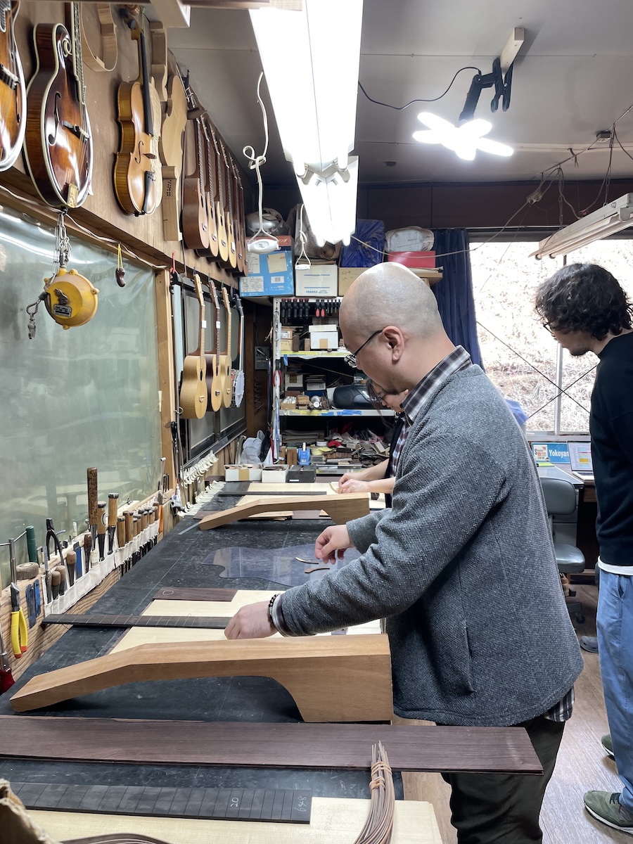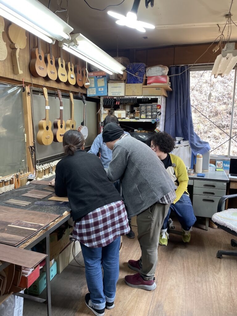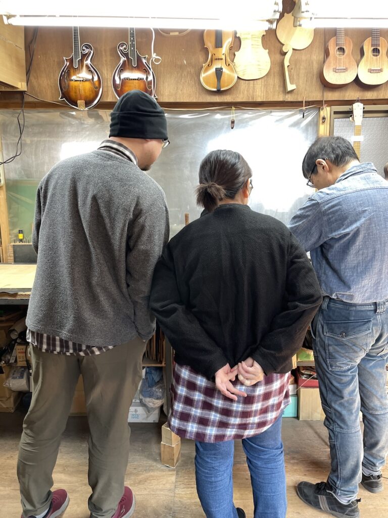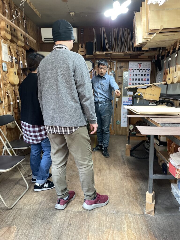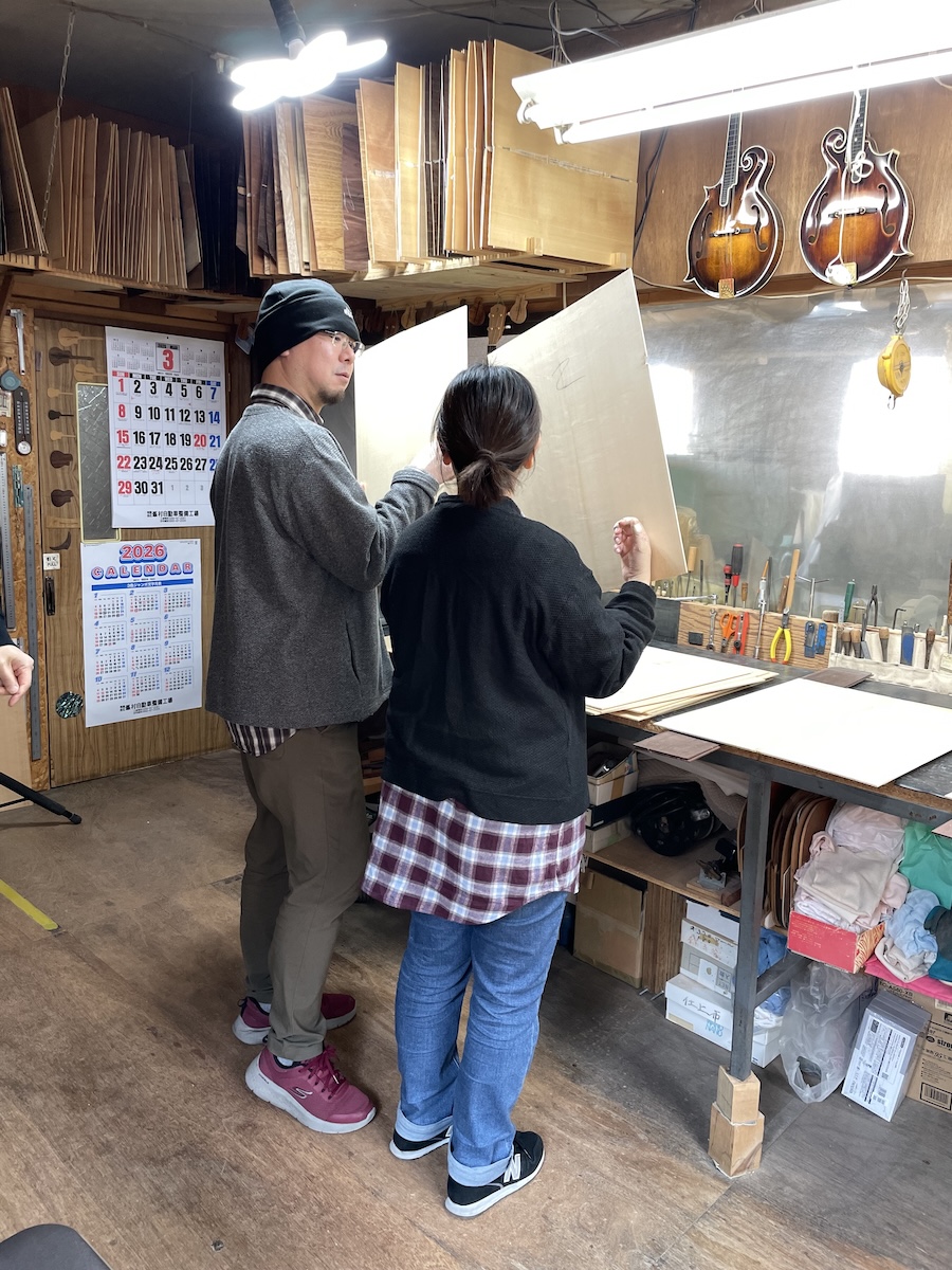 「ブラジリアンローズウッド」バック&サイドモデルをオーダーのため、愛知県H様ご夫妻に工房へ再訪いただきました。