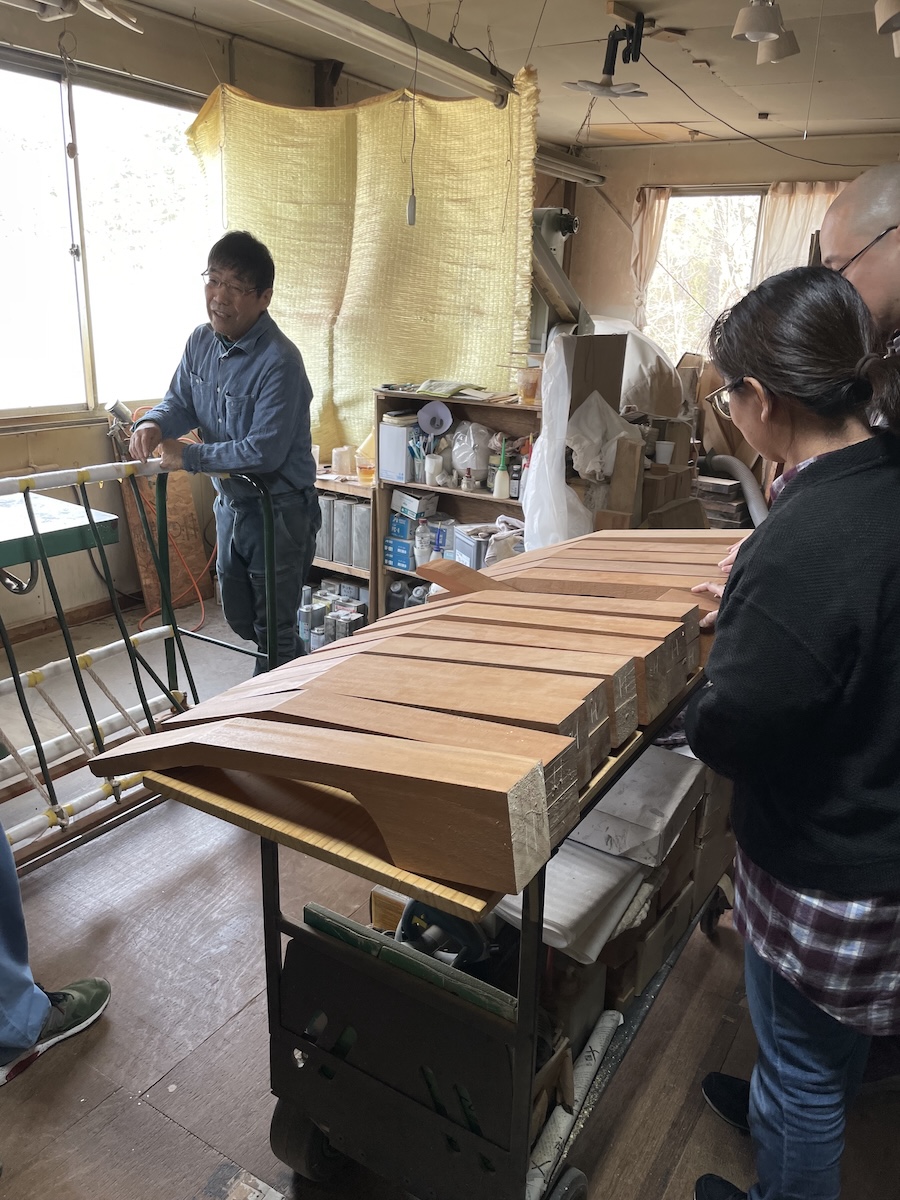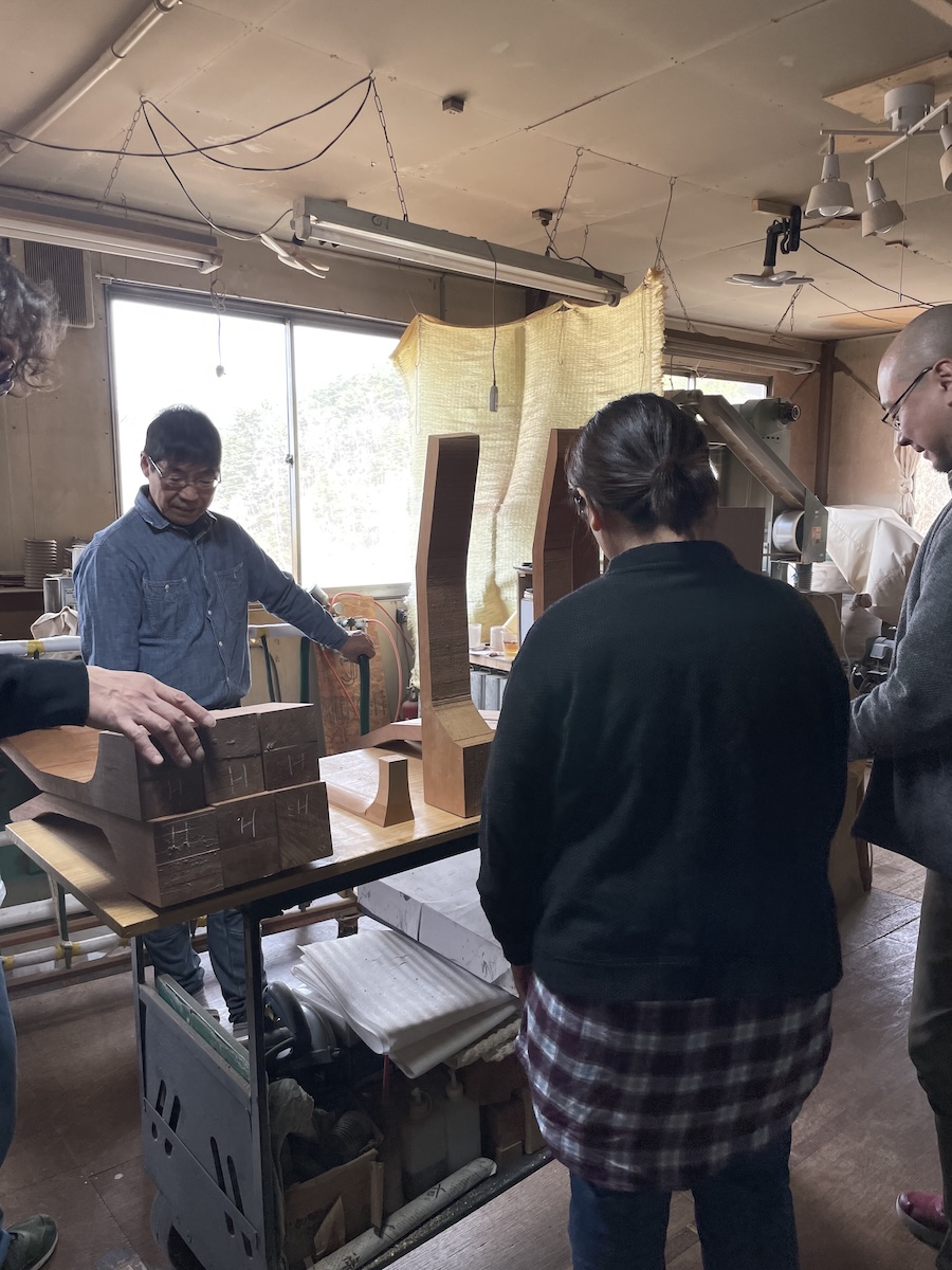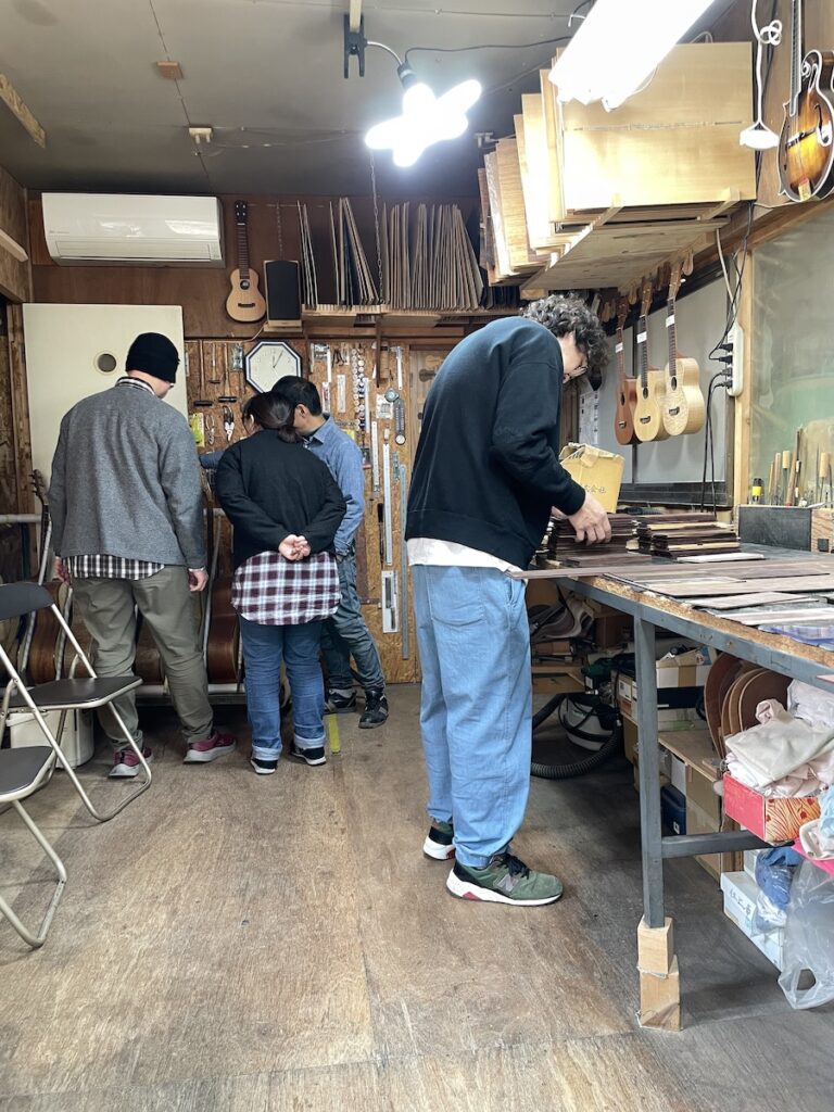 昼食後は、駆け足で工房裏のNAGANO OFFICEもご覧いただき、材料選定に戻ります。