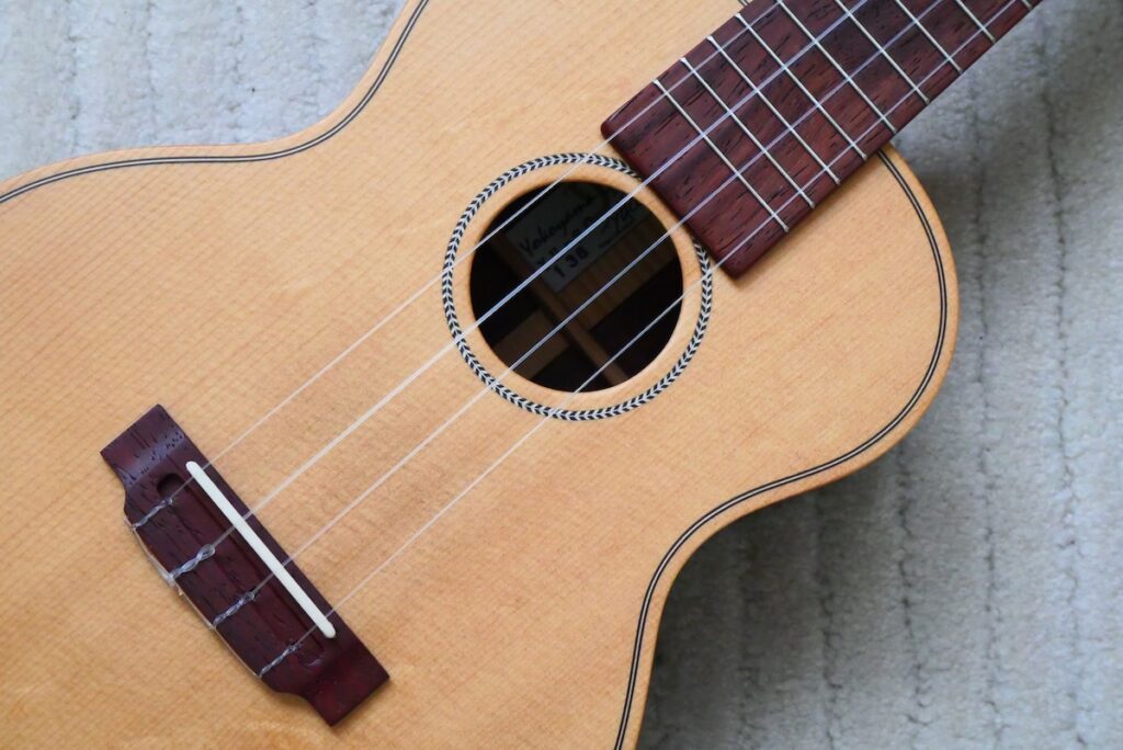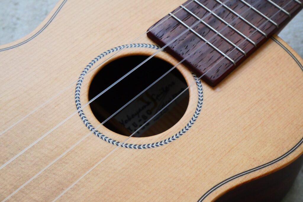 芯のあるシトカスプルースをトップに、カマティロバック&サイドを合わせることで、ギター的な響きの、Yokoyama Guitarsならではのウクレレに仕上がりました。