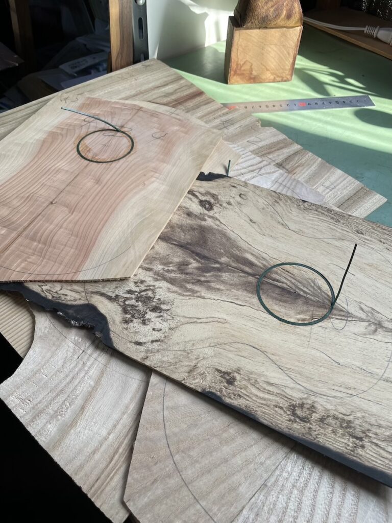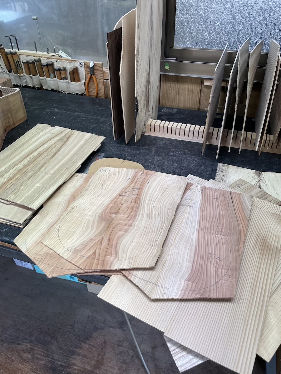 赤松、黒柿、桐、初めて製作する楠(くすのき)など、様々な材料で製作することにしました。