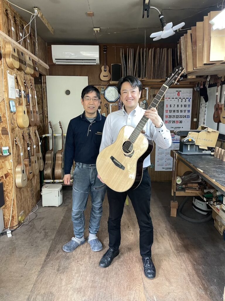 ご自身で選定いただいた材料がギターに。とてもお喜びいただけました。