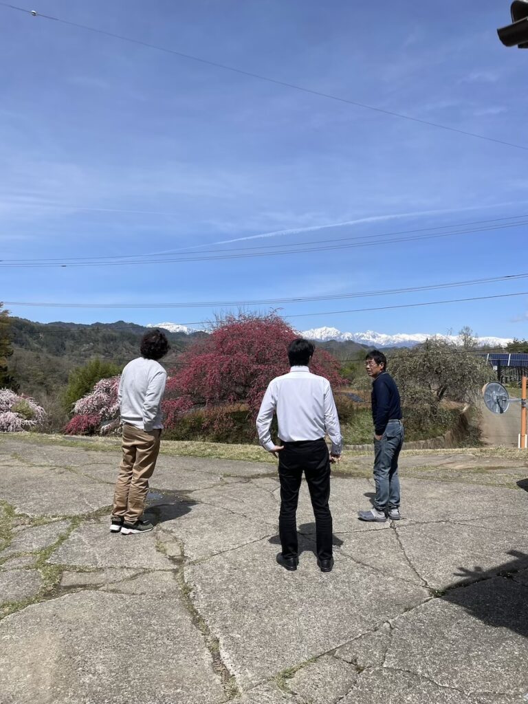 とても良い天気で、アルプスもきれいに見えています。せっかくの天気なので、O様をお見送りした後、花見ランチをする事に。