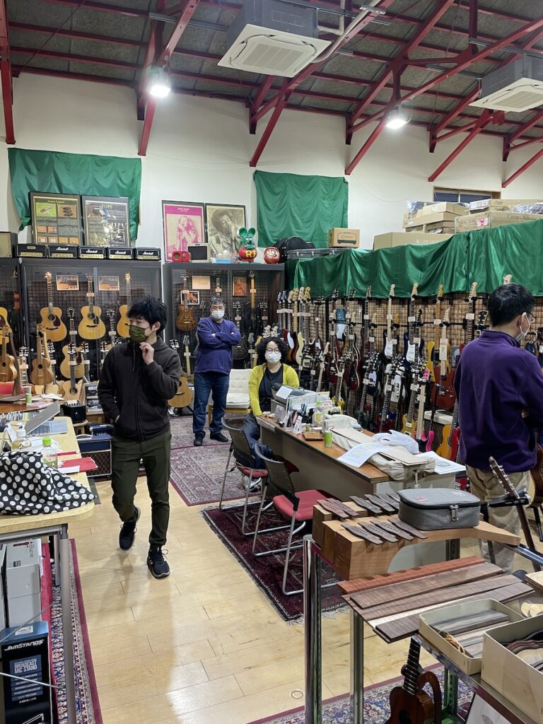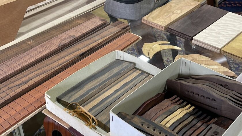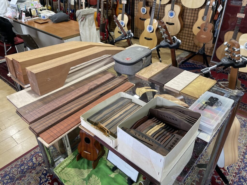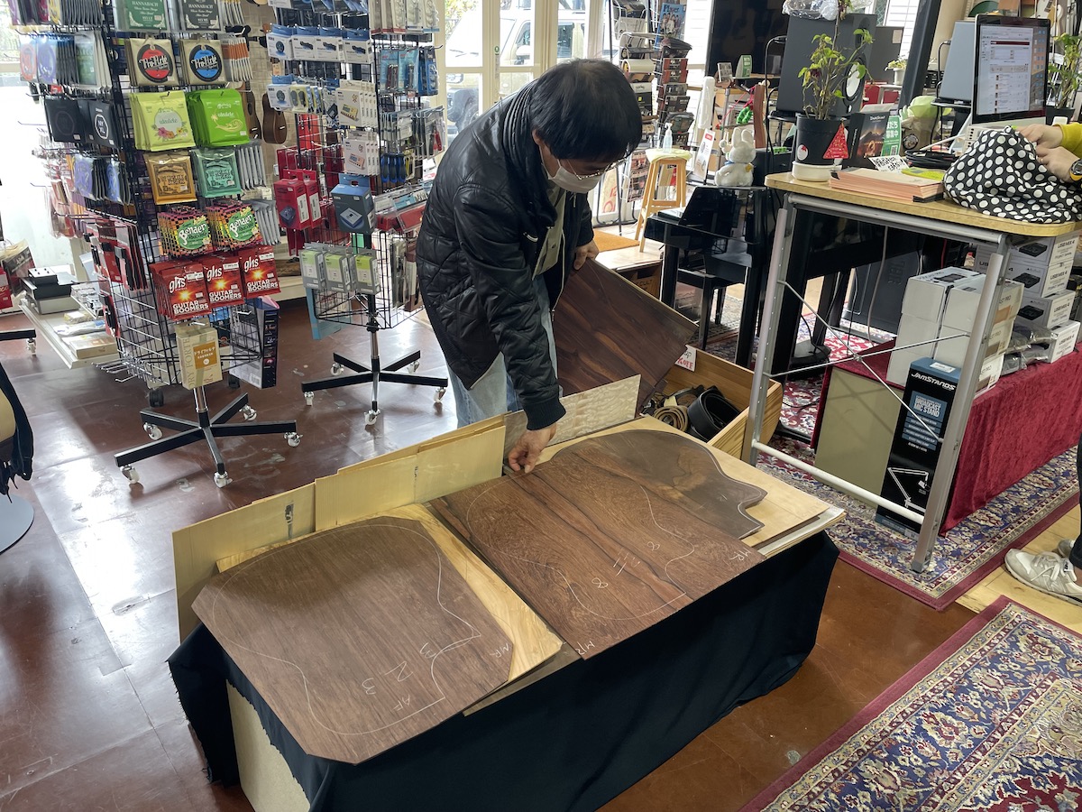 神奈川県 K様は極上杢のキルトメイプル材で、次回オーダーモデルの構想を温めていたようです。詳細は工房で詰めましょう。