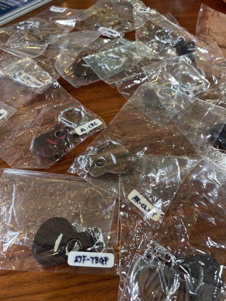 以前、Ogawa Inlay Craftの小川さんに製作していただいたキーホルダーも大好評でした。次回も何かしらの小物をご用意させていただこうかしら?!何がいいですかね・・・リクエストがあればお願い致します!