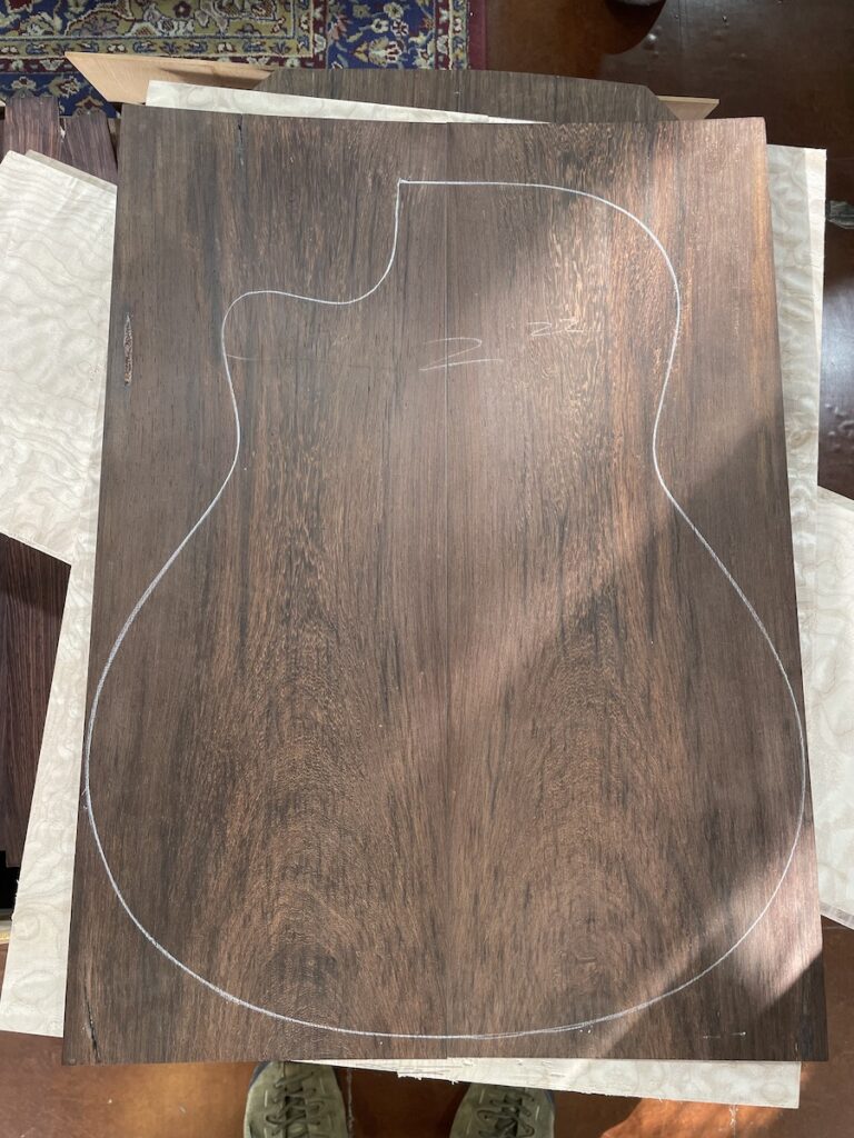 オーダーが決まっていないにも関わらず、材料を手ににんまりのS様。それもそのはず、極上のブラジリアンローズウッドです。最近では、全く材料の入荷がなく、横山工房も減っていく一方です。