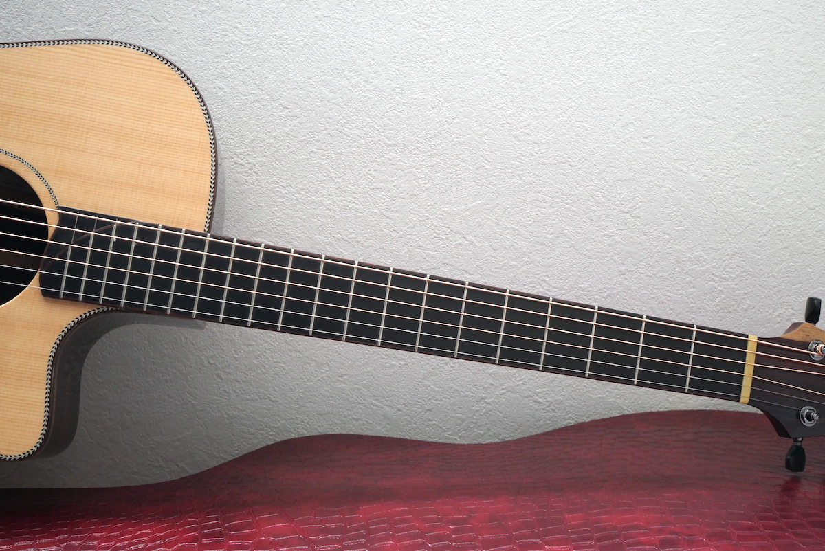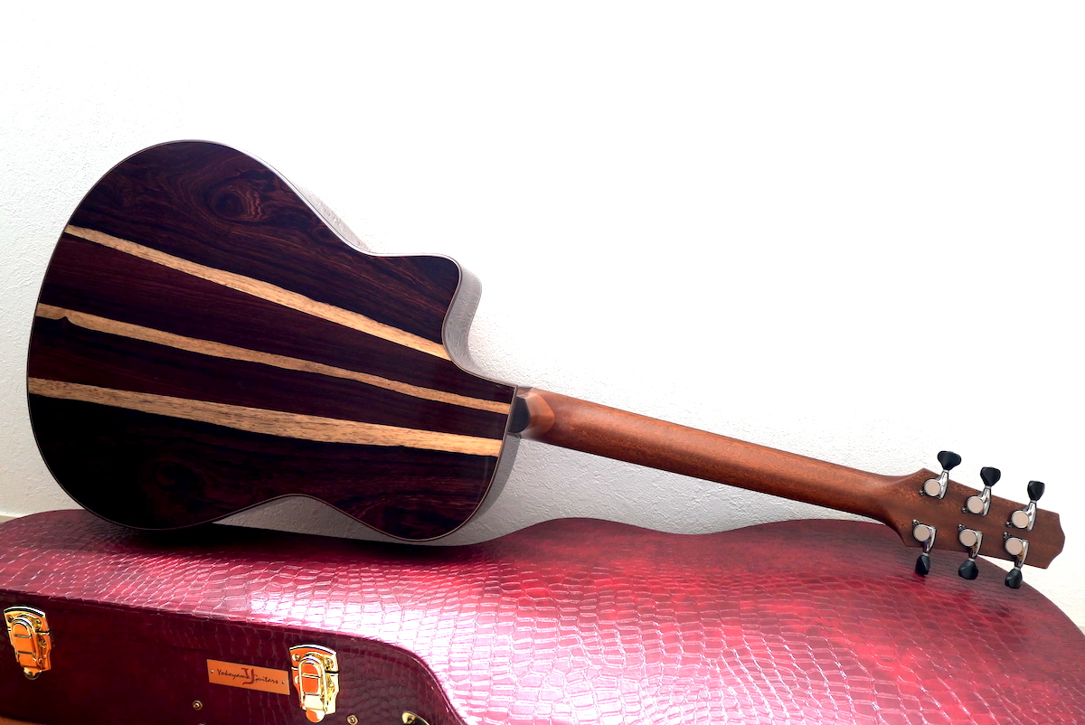 カマティロとも相性が良く、柔らかなサウンドを持つホワイトスプルースをトップに採用し、バックのカマティロは4ピース材をチョイスしています。柔らかいタッチでもボリューム感のあるサウンドが魅力的です。