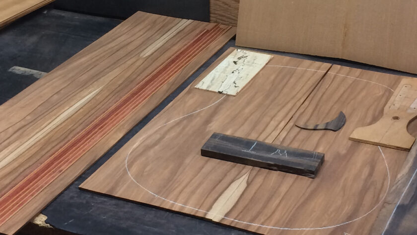 指板を貼って、ネック整形&フレット打ちして塗装へ。そのあとブリッジを貼れば完成ですからね。あと一か月かからないんじゃないかな。