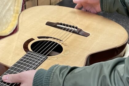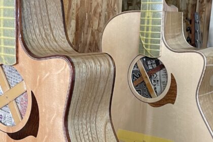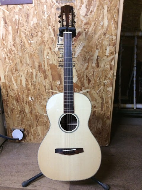 材料はアディロンダックスプルーストップ、アクアティンバーマホガニーサイド&バックです。