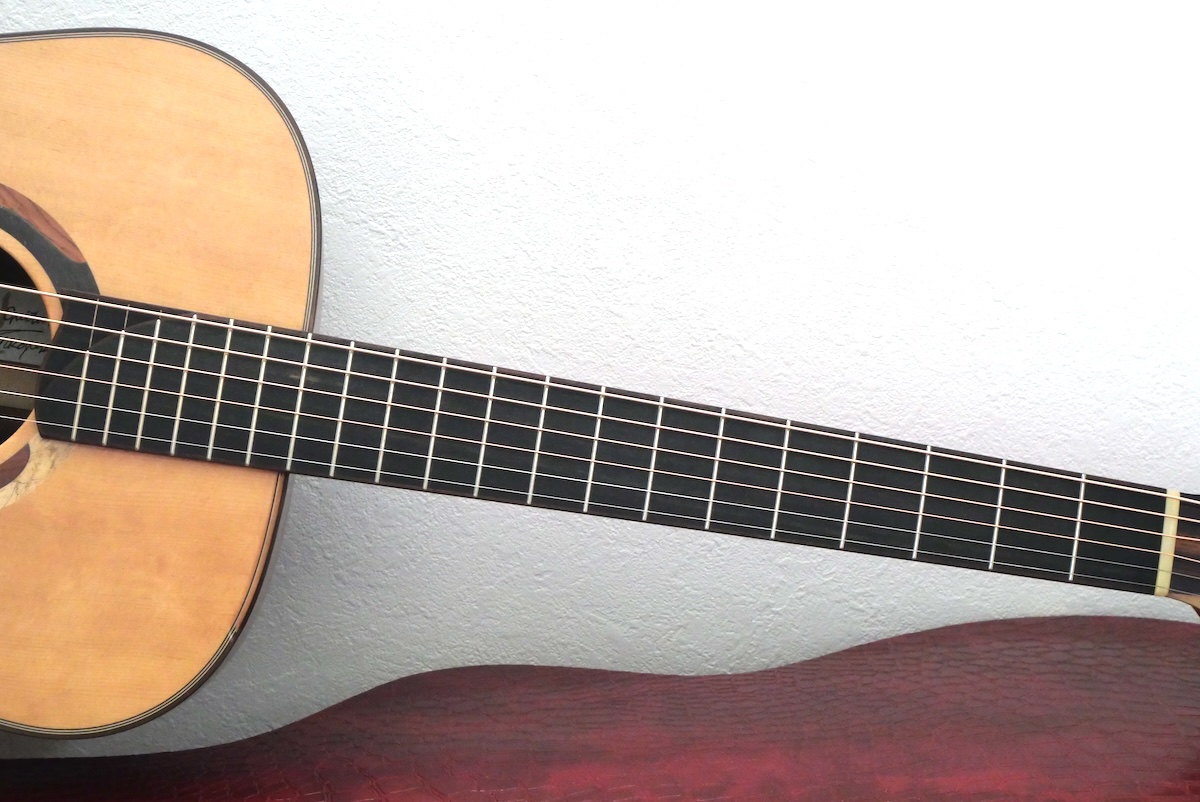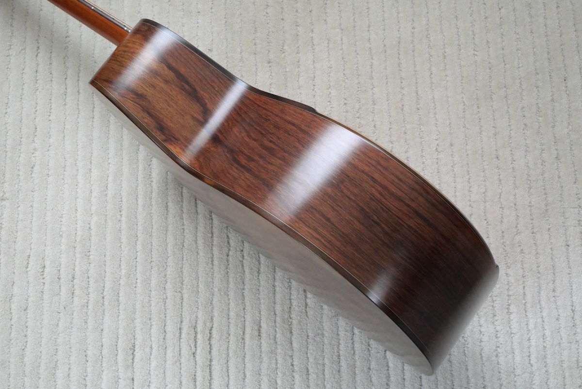 ボディサイズは、ノンカッタウェイのオーディトリアムを採用。カッタウェイモデルとは異なり、豊かで、ゆとりのある鳴りかたです。最近ではノンカッタウェイモデルを好まれる方が増えてきましたが、お勧めのボディシェイプです。
