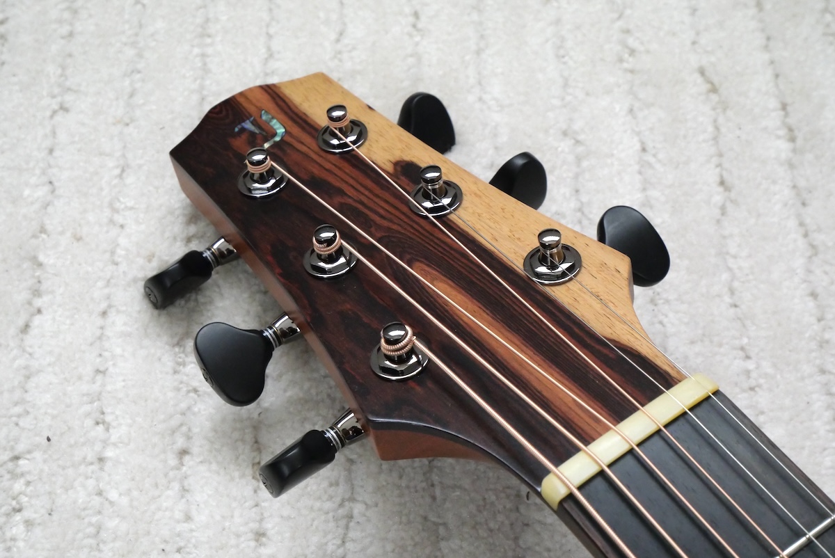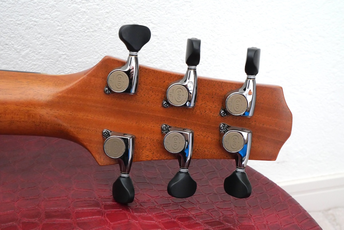 ボディバインディングはローズウッドを採用。ネック材には稀少なワンピースマホガニーを贅沢に使用しています。